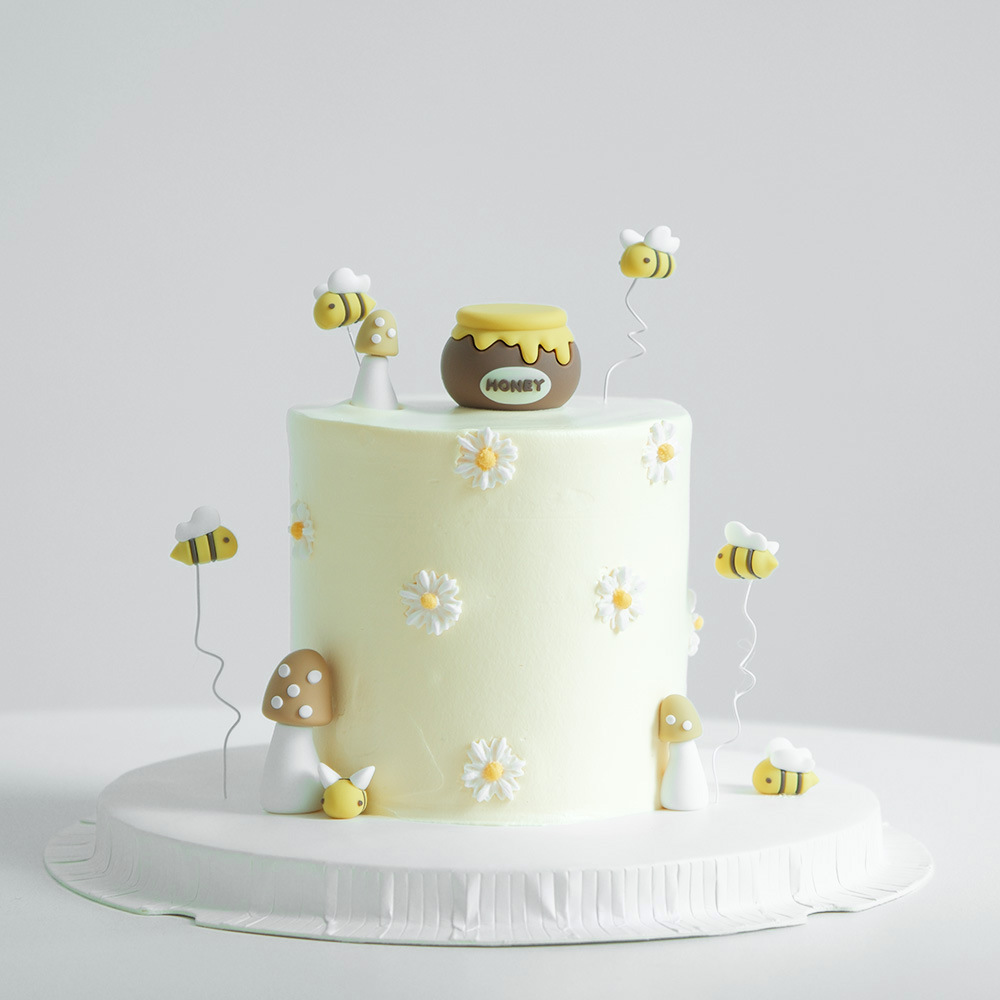 网红蜜蜂罐蜜蜂生日蛋糕装扮蘑菇桌面摆件甜品台烘焙车载卡通蛋糕