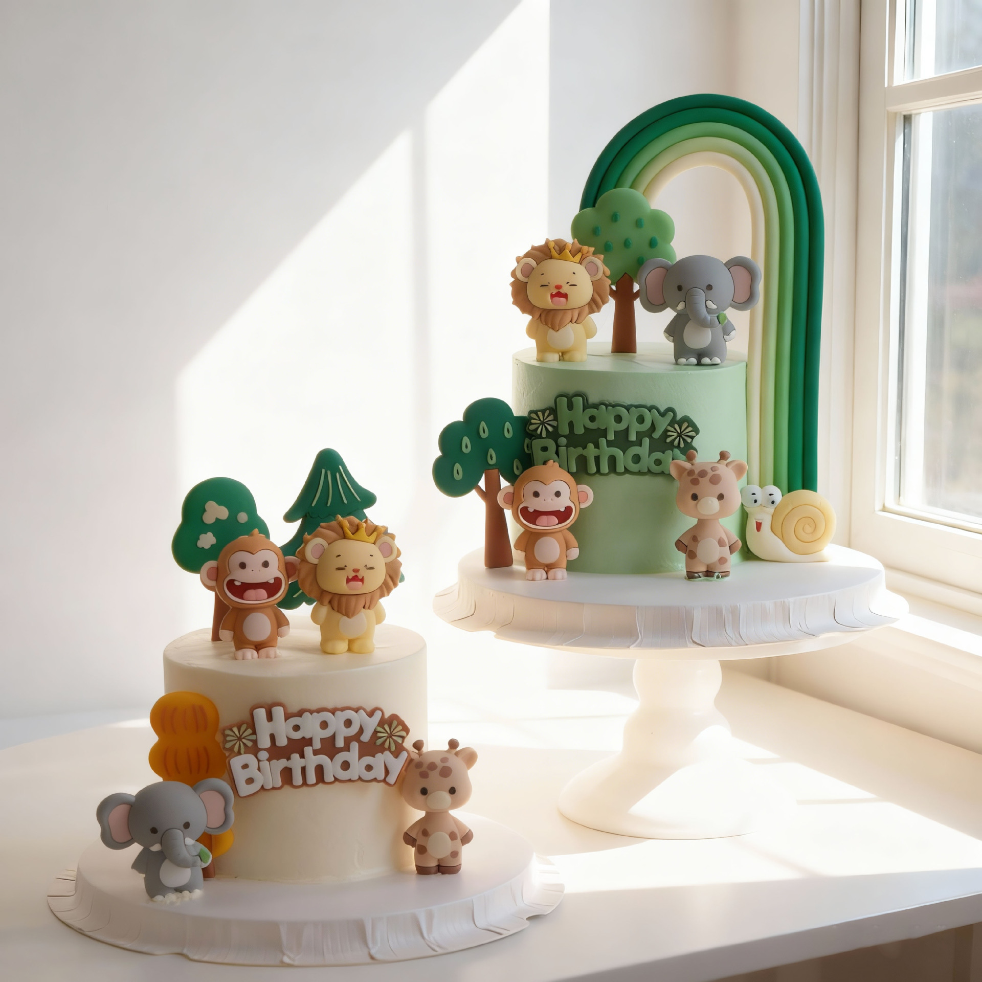 动物主题蛋糕装饰猴子狮子长颈鹿大象彩虹小树桌面摆件甜品台装扮