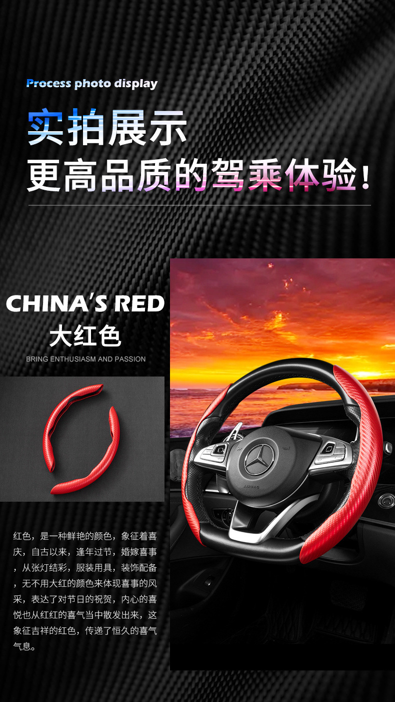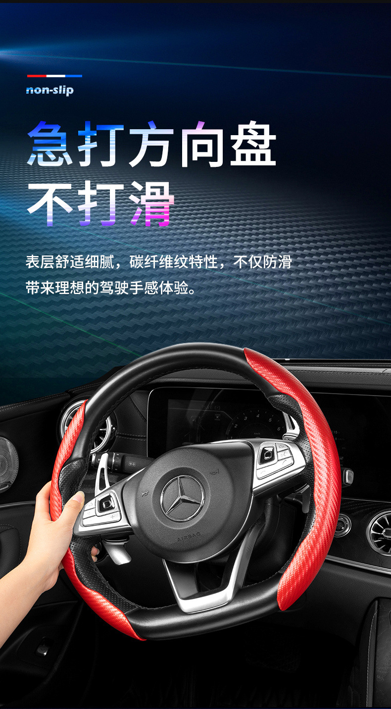 国境を越えた自動車のハンドルカバーのカードカバーの半包炭素繊維超薄型四季通用車載運動滑り止め車のハンドルカバー