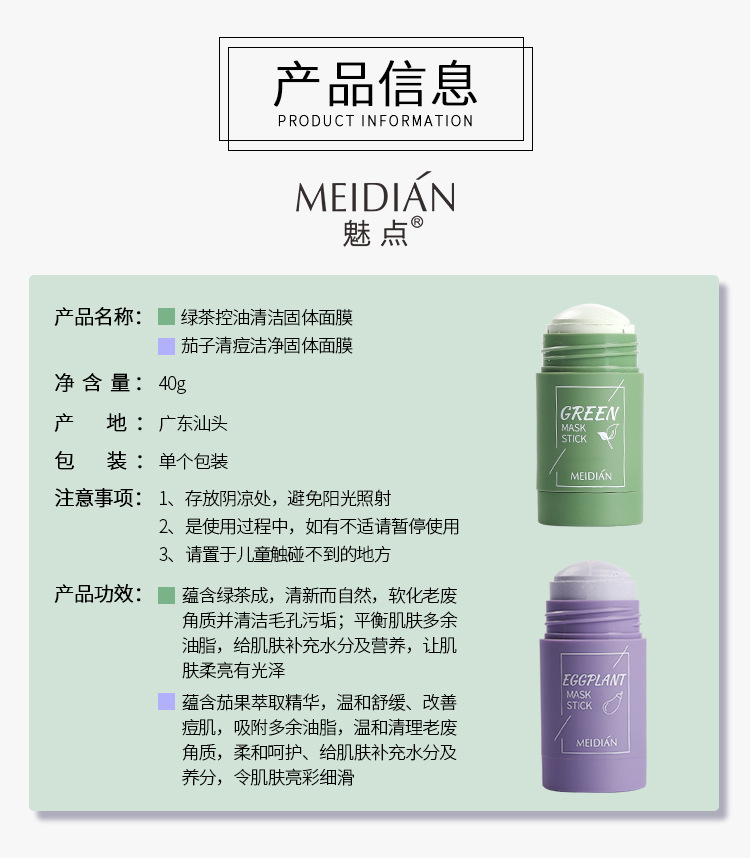 魅力点クロスボーダー緑茶泥膜棒塗布式マスクナス深層洗浄黒頭毛穴マスク棒