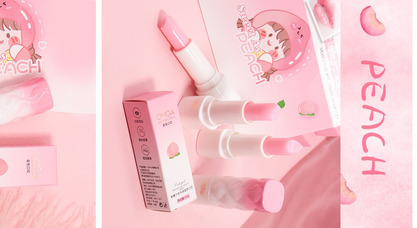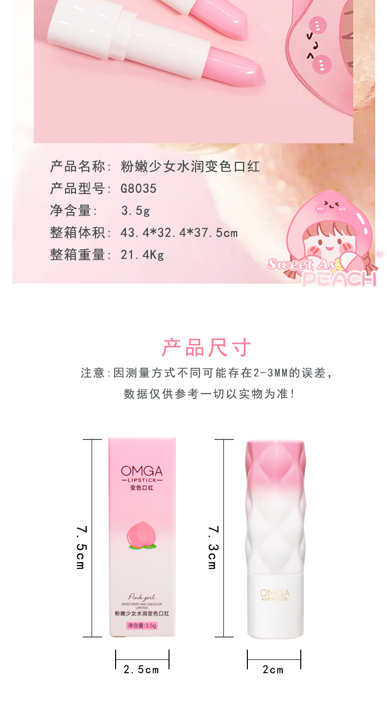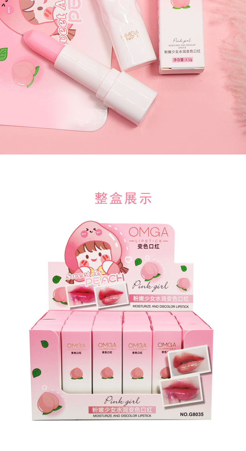 Omga水蜜桃変色口紅ピンクの少女はみずみずしく潤いを与えて保湿します。
