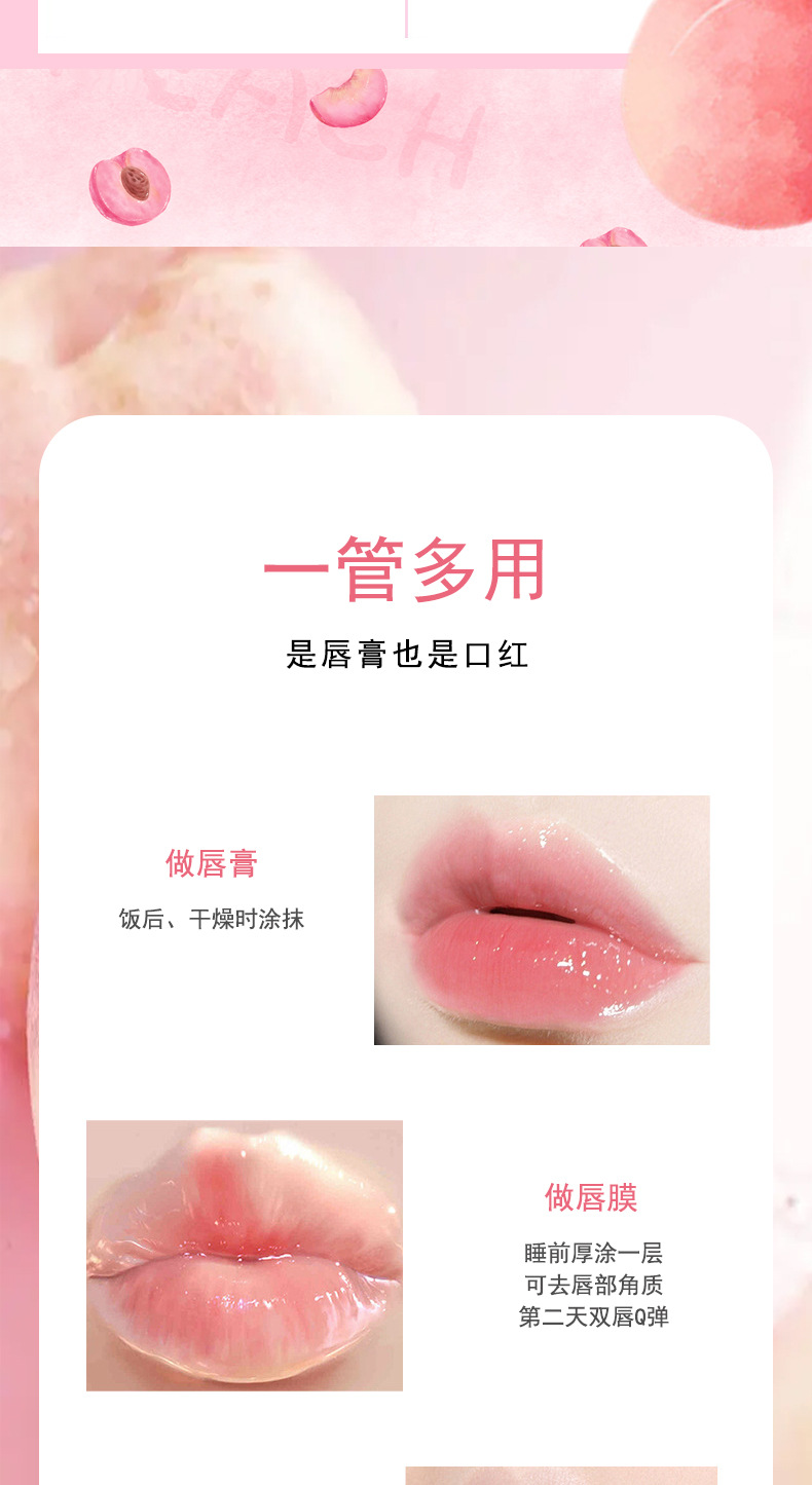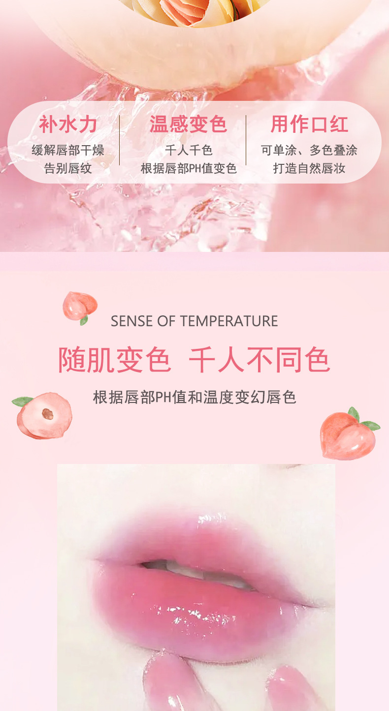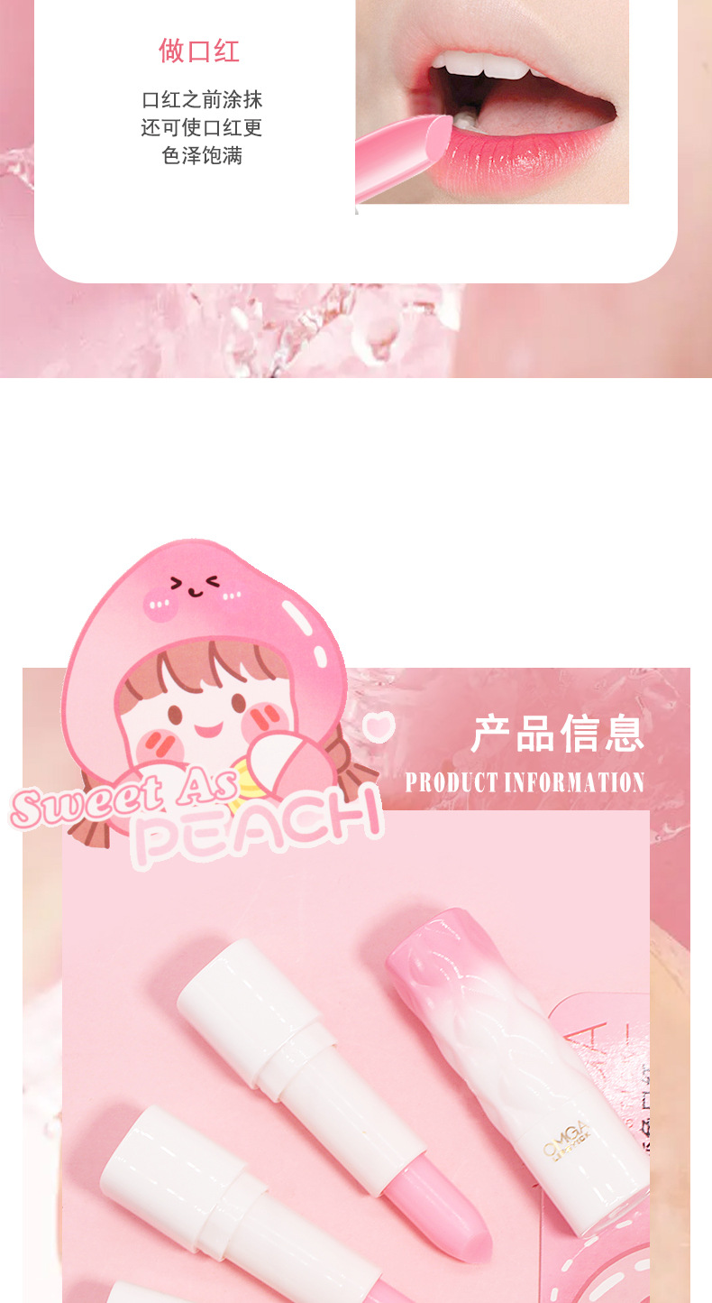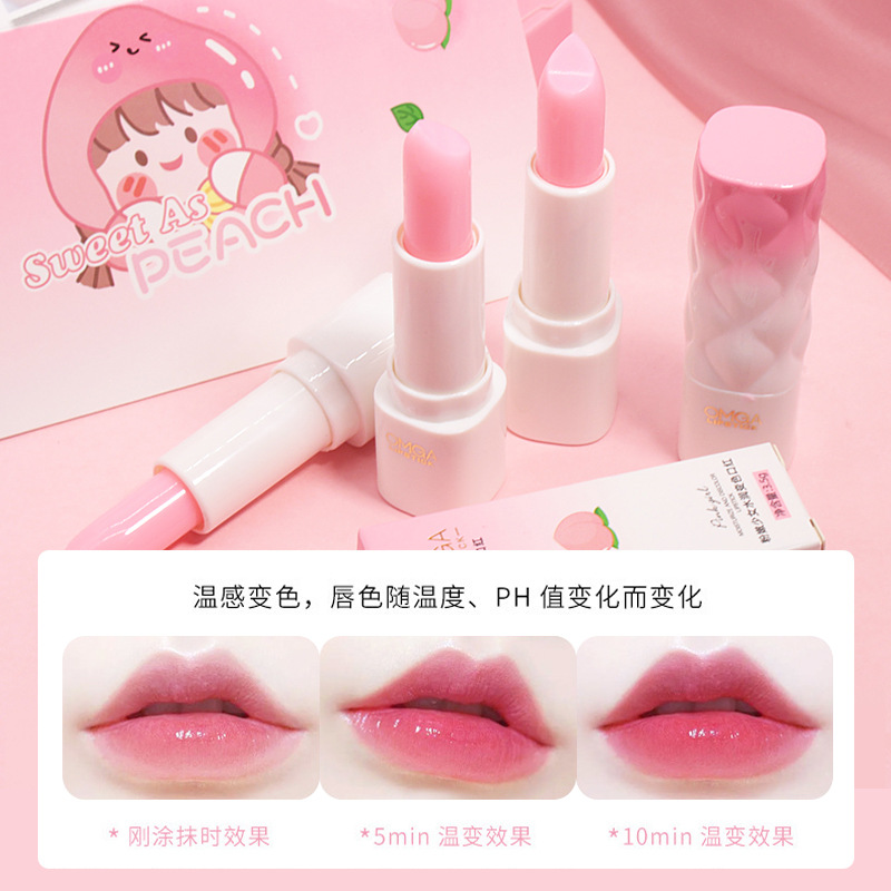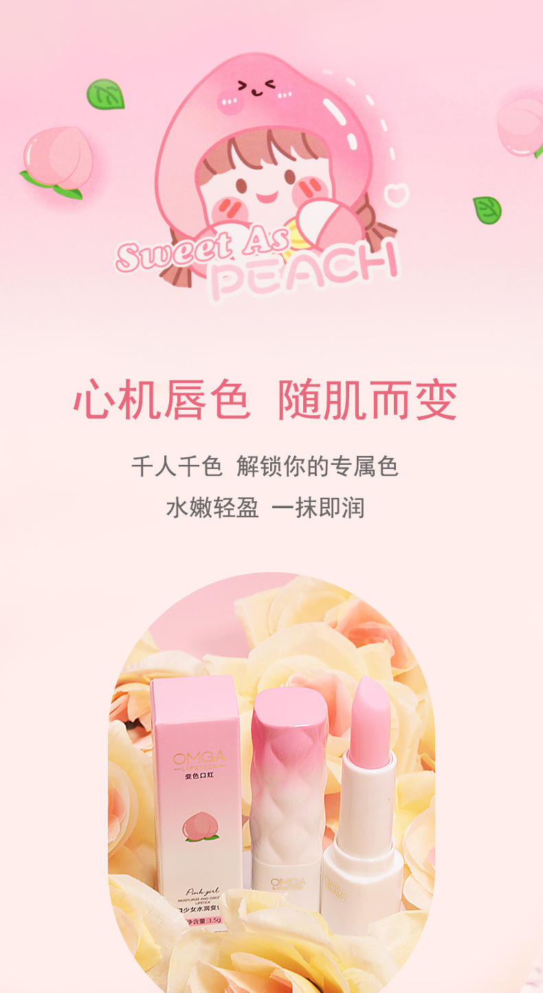 OMGA蜜桃少女変色口紅潤い保湿化粧水蜜桃水晶ゼリー温感潤唇クリーム