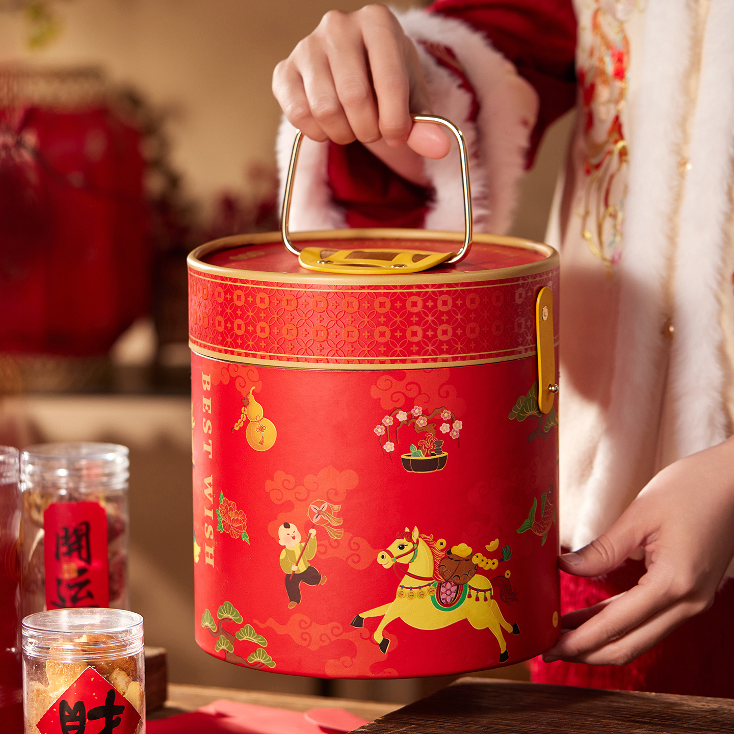 年货包装2026圆形新年礼盒包装抱抱桶零食年货坚果春节年货礼盒