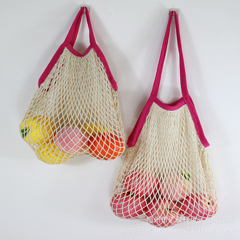 現物全綿ネットポケットスーパーショッピング手提げ式編み網袋野菜果物ネットポケットビーチ袋工場卸売り