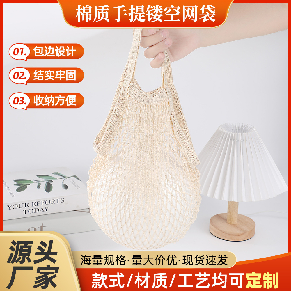 国境を越えて人気の綿製ハンドバッグ、メッシュバッグ、エコバッグ、果物用便利なショッピングバッグ、ハンドバッグ、中空メッシュバッグ