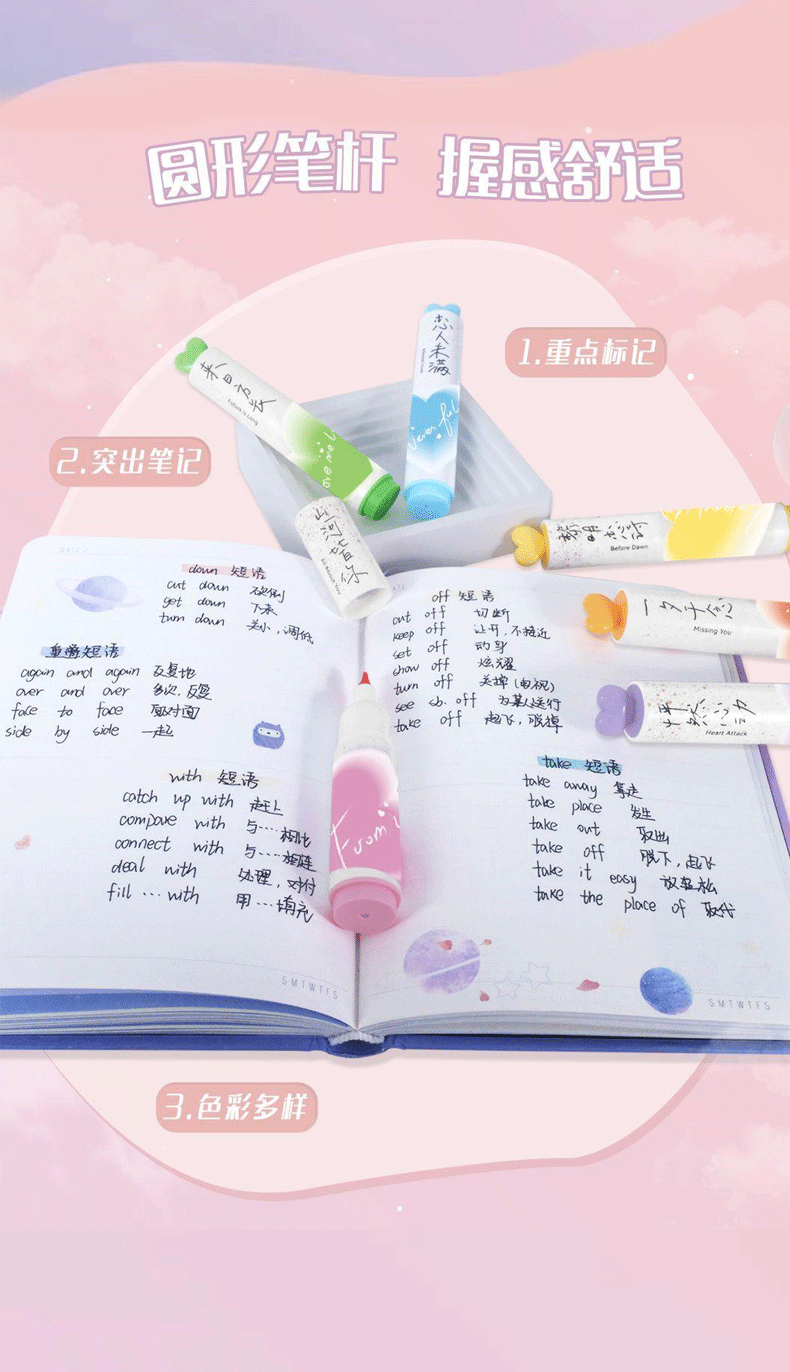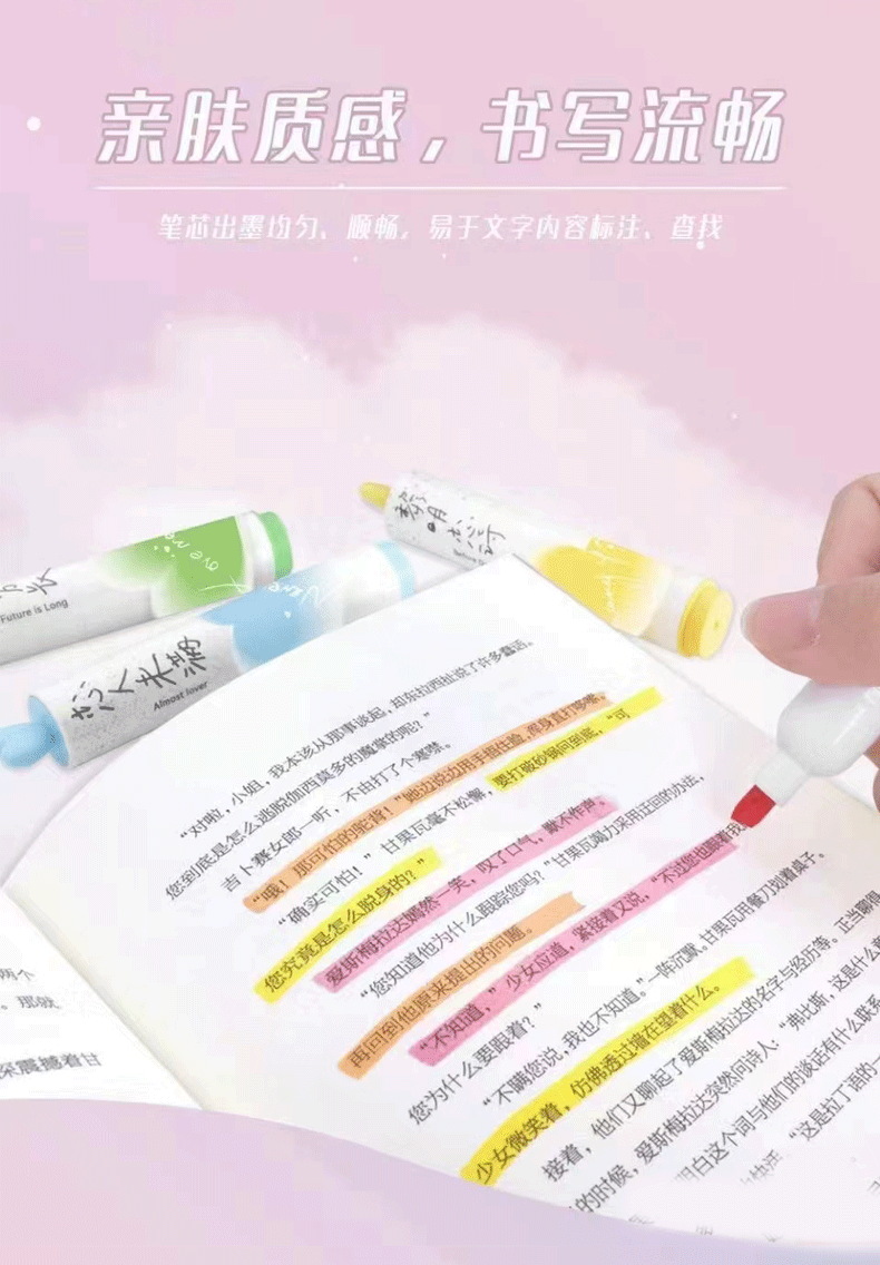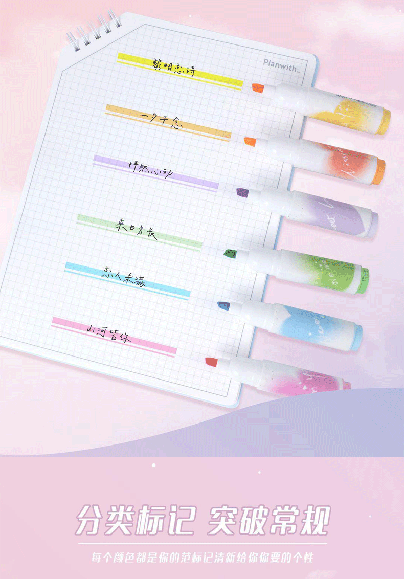聴文7232新型愛蛍光ペン学生用6色重点マーカーペン