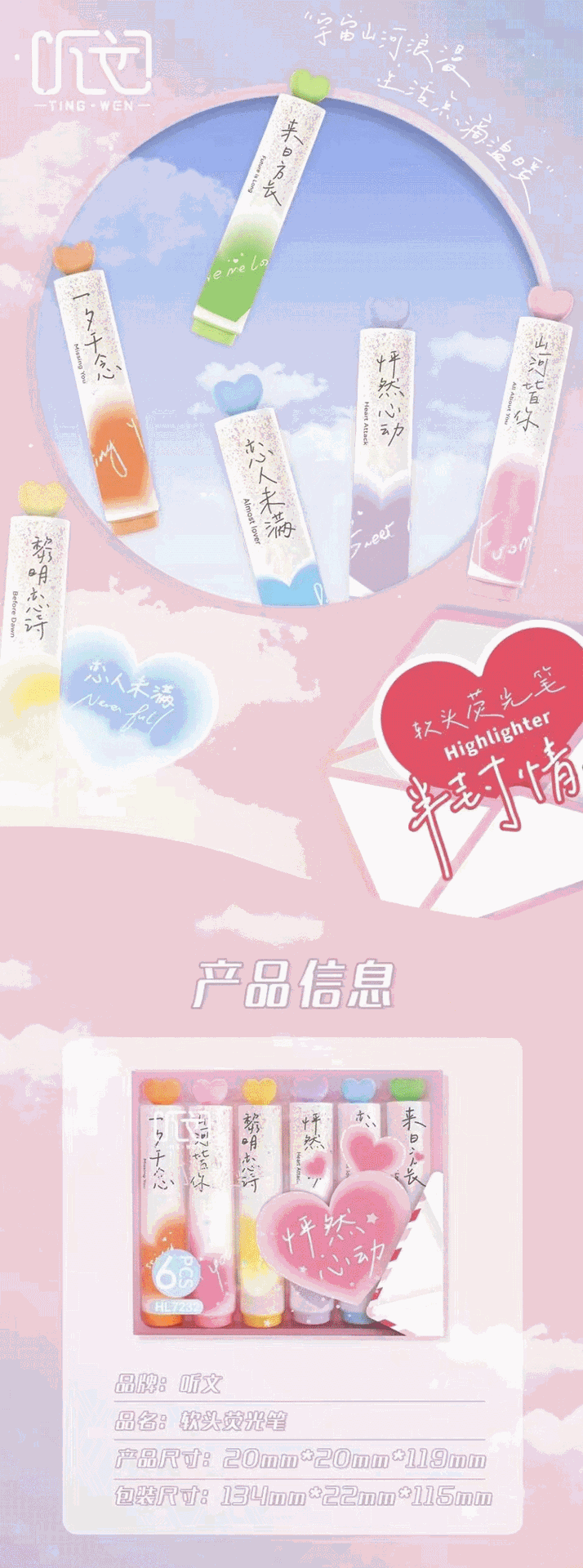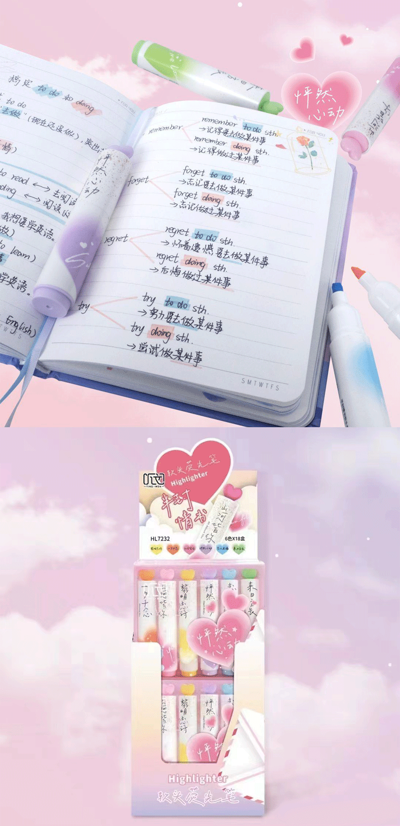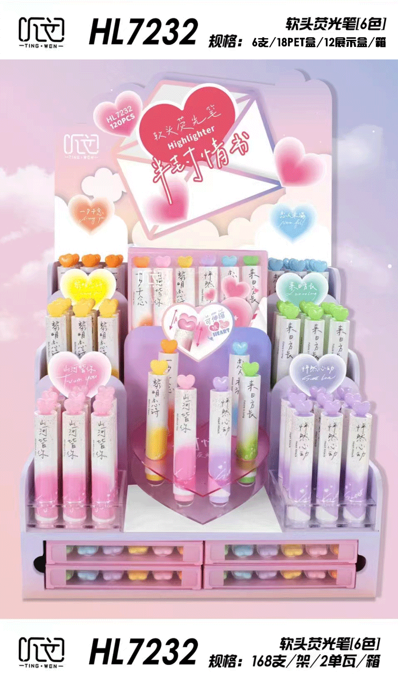 聴文7232新型愛蛍光ペン学生用6色重点マーカーペン