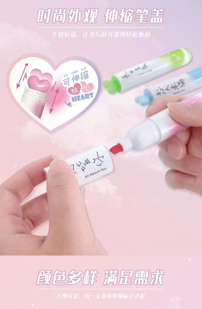 聴文7231小愛かわいい蛍光ペン学生は創造性6色で重点マーカーペンDIY手帳ペンを飾った