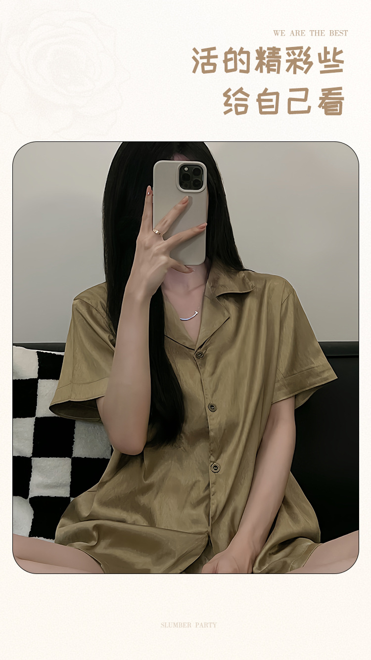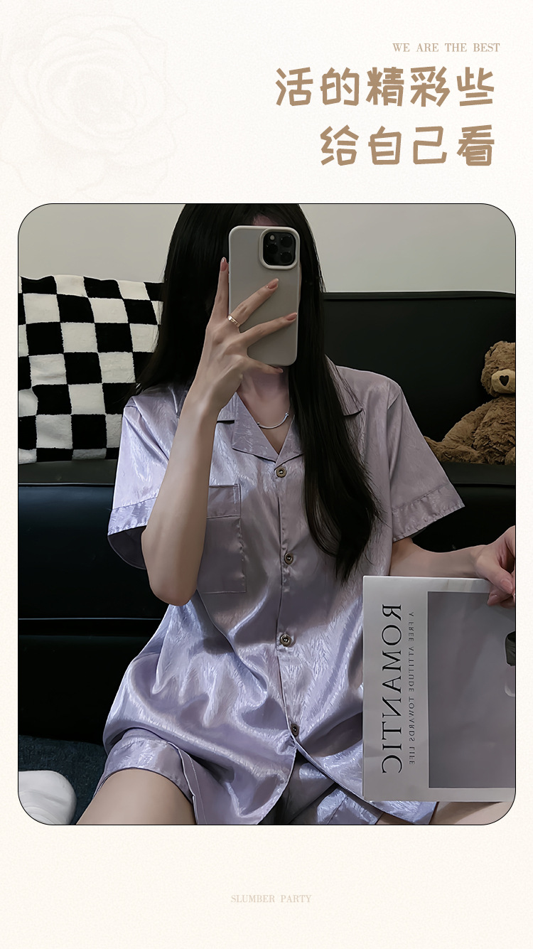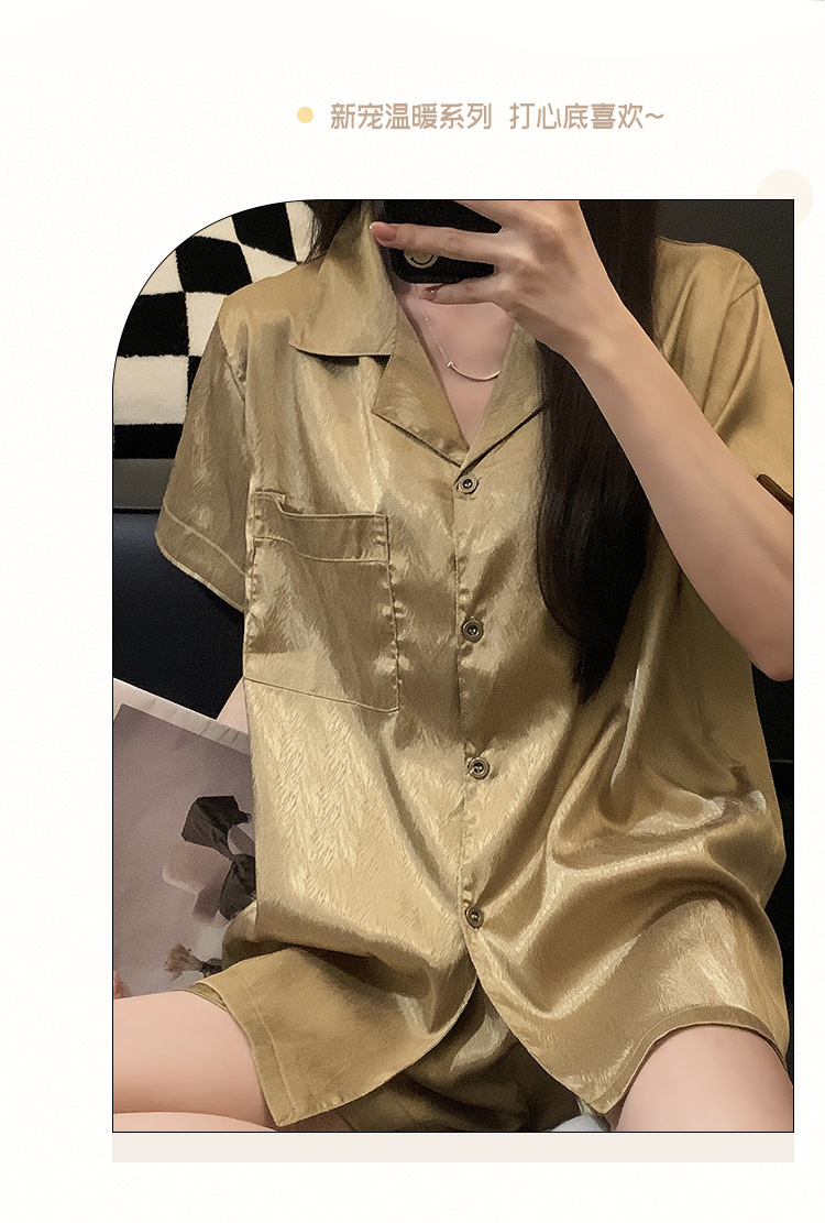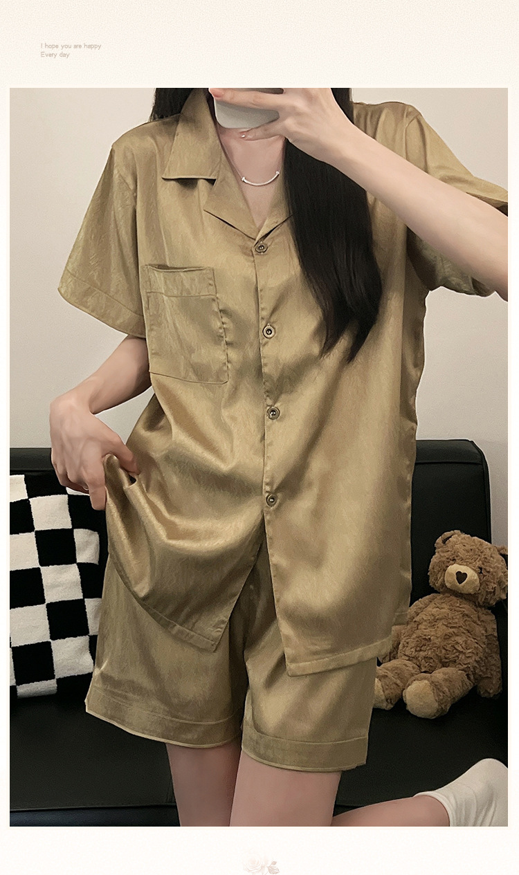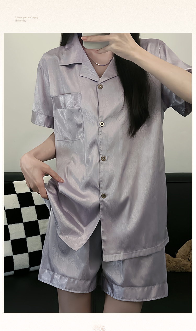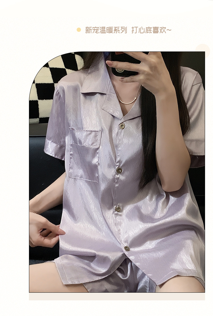 夏のパジャマ女性の高級感の薄い半袖の氷雪の糸の純色の半ズボンのシルクの家の服の2つのセットは外に着ることができます。