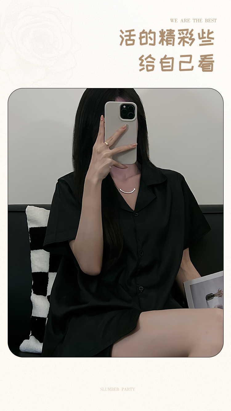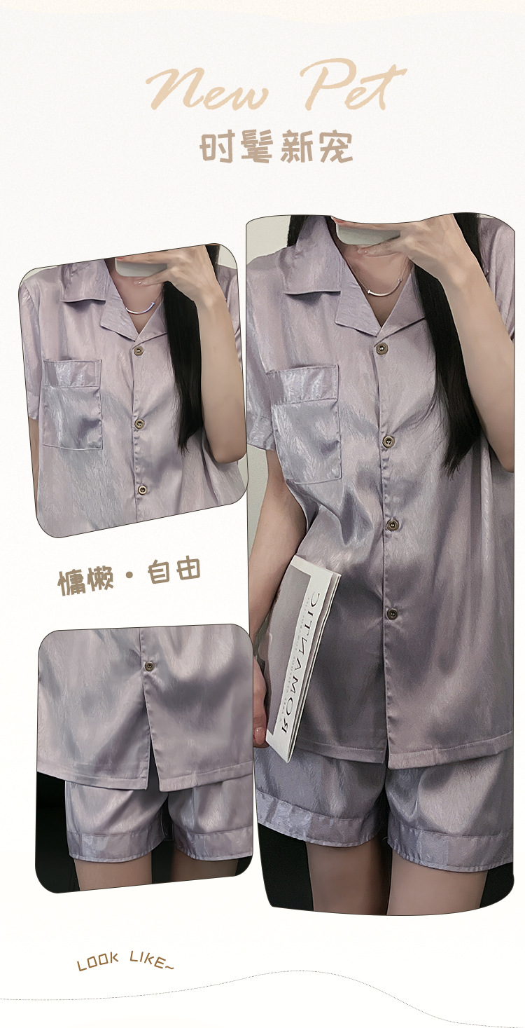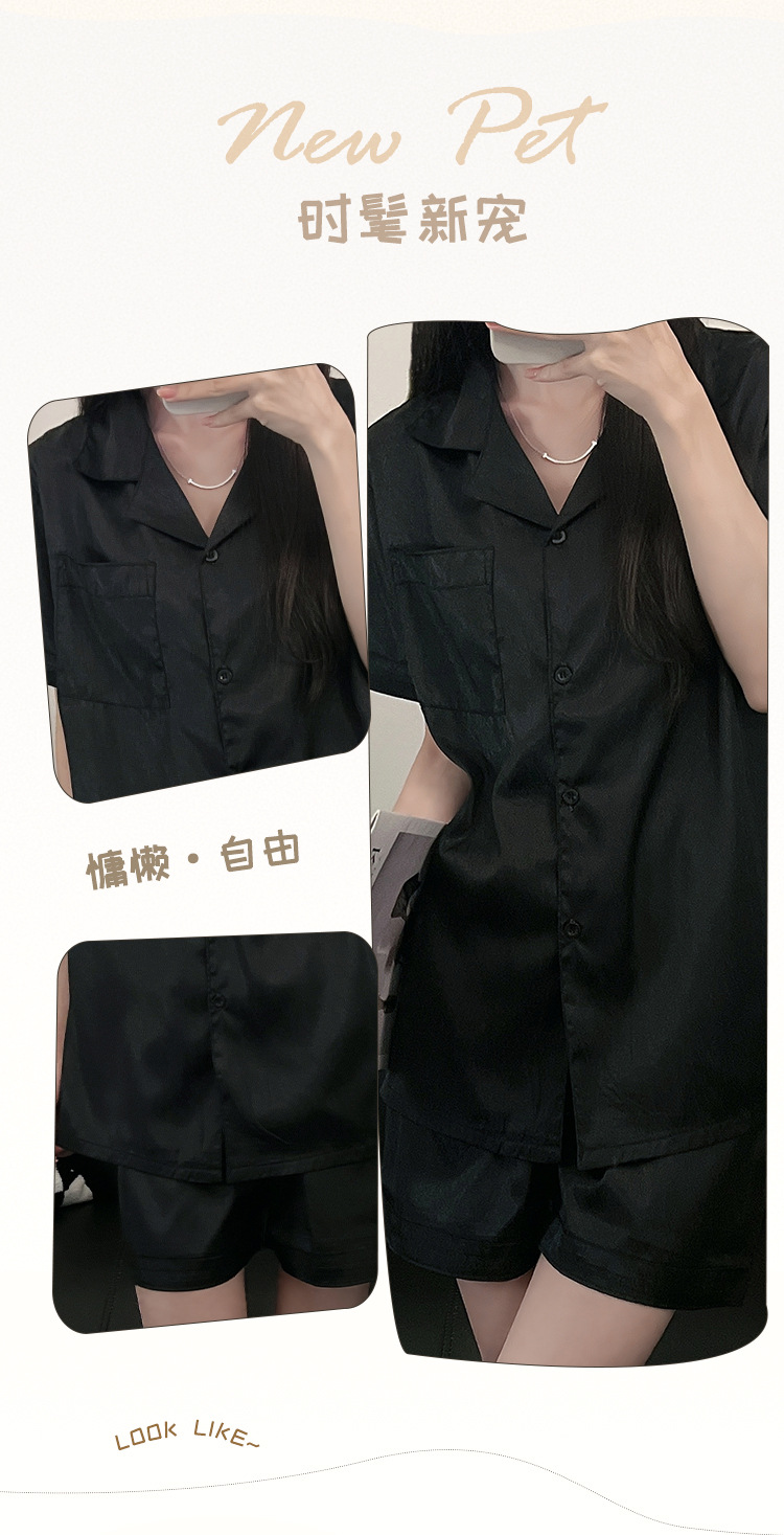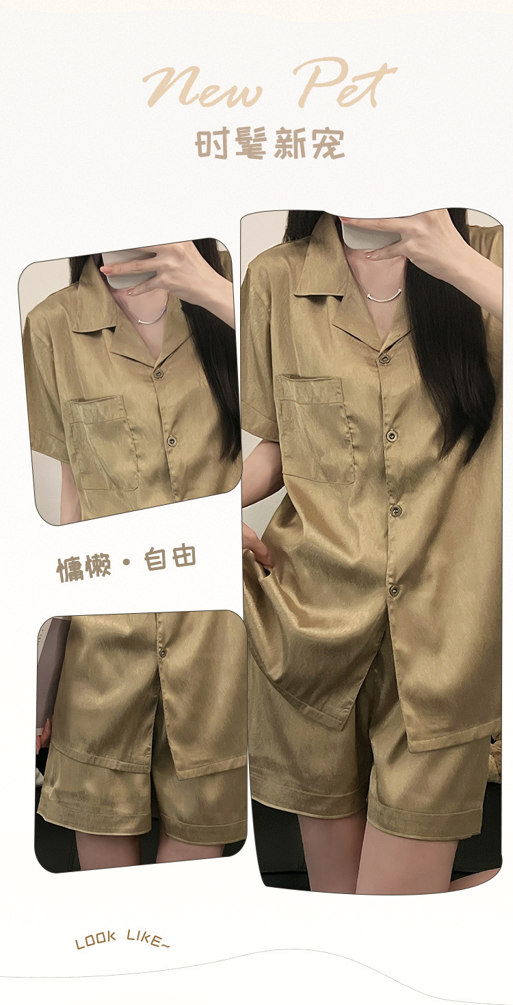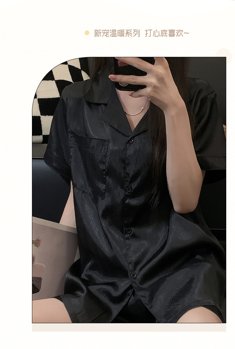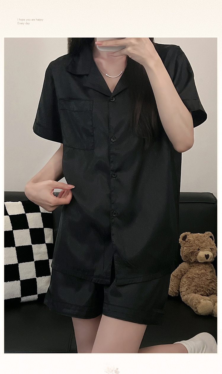 夏のパジャマ女性の高級感の薄い半袖の氷雪の糸の純色の半ズボンのシルクの家の服の2つのセットは外に着ることができます。