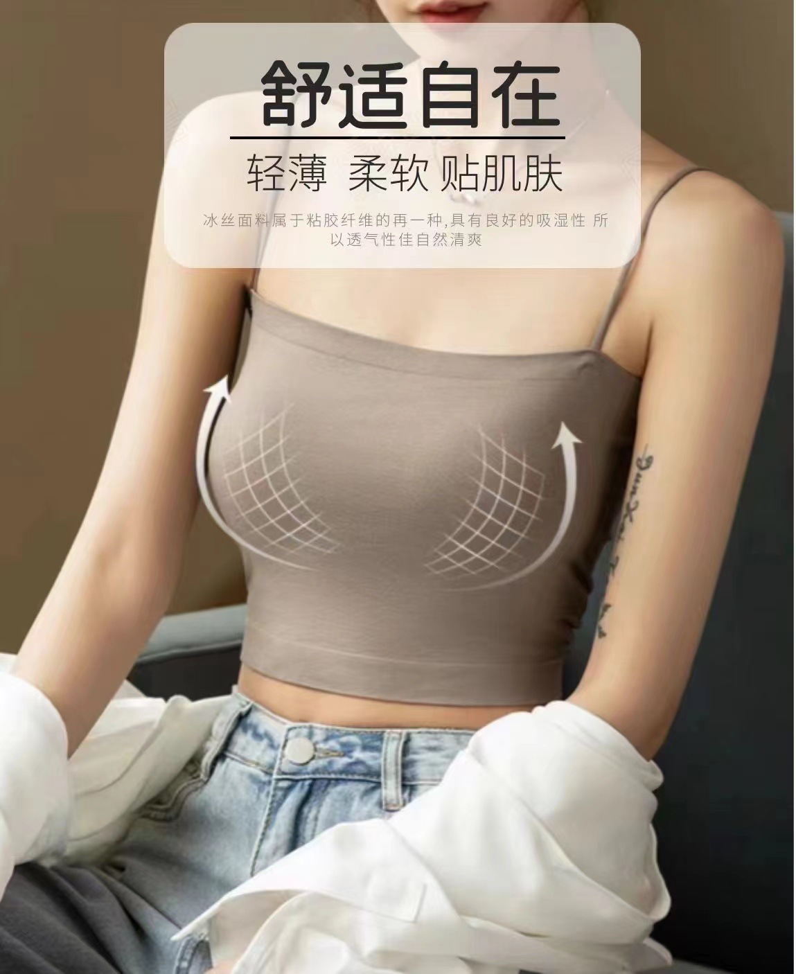 無痕美背ストラップベスト一体固定カップの胸パッドの外着は底を打って通気性があります。