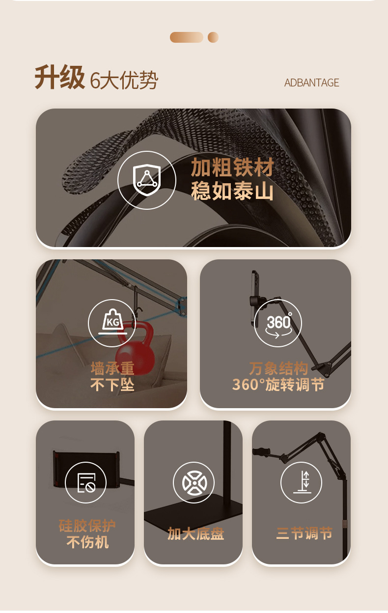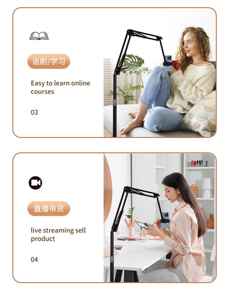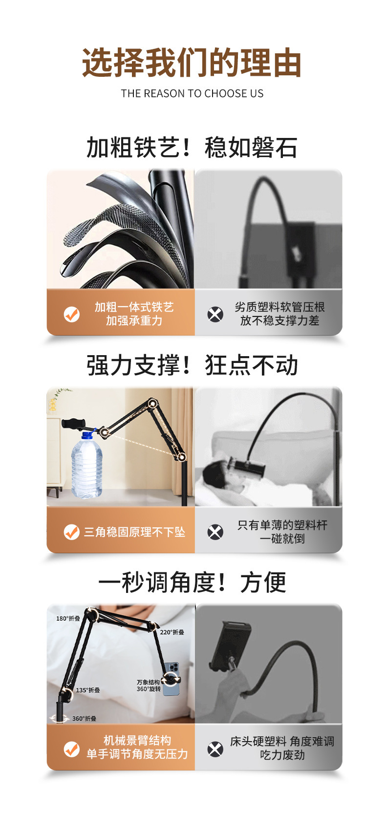 多機能サスペンション式スマホスタンド、自立型ネット配信スタンド、ポータブルベッドサイドスタンド、動画視聴用タブレットスタンド、卸売