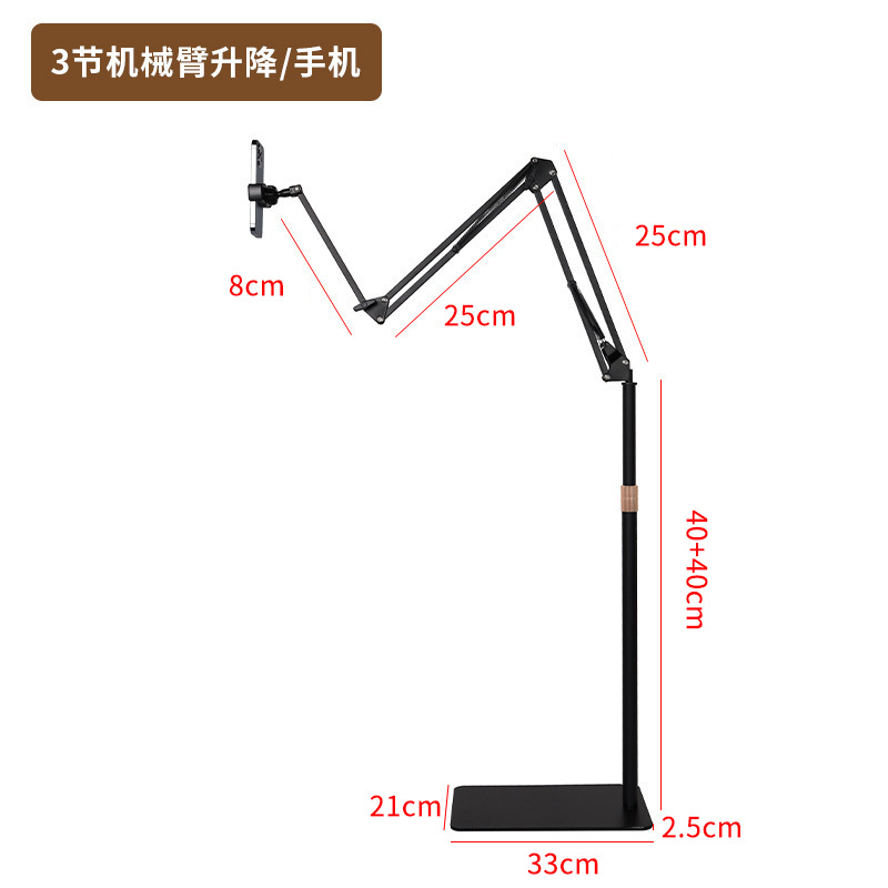 新型3段式メカニカルアームタブレットスタンド、四角い台座、ポータブル、ネットで話題のライブ配信用、昇降可能なスマホスタンド