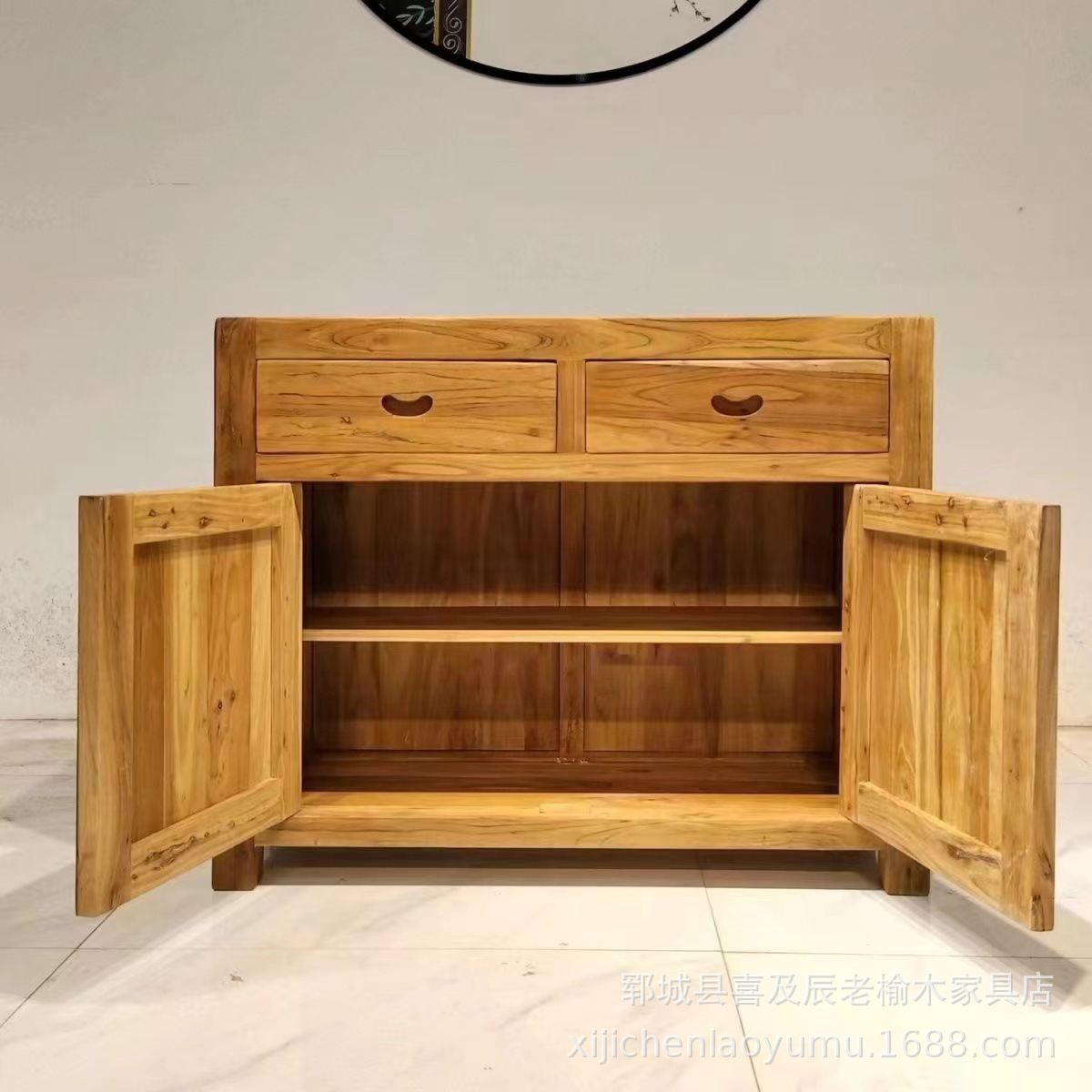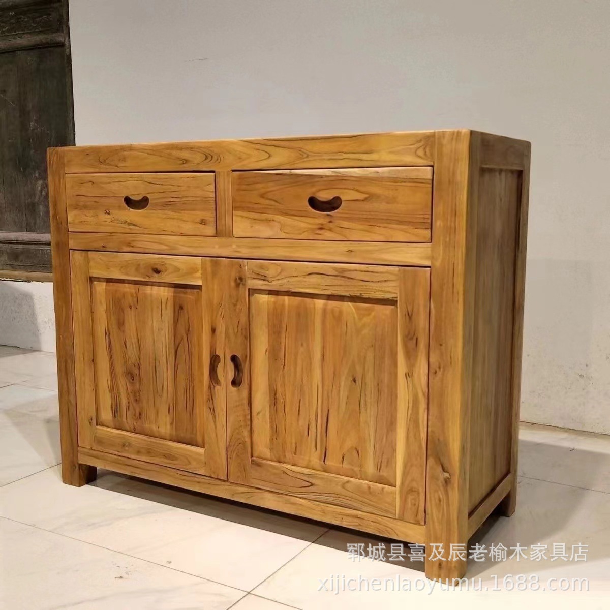 古い楡の木の食事のサイドキャビネットの全実木の客間のロッカーの家庭用の下駄箱の楡の木の斗の戸棚の実木のお茶の戸棚のロッカー