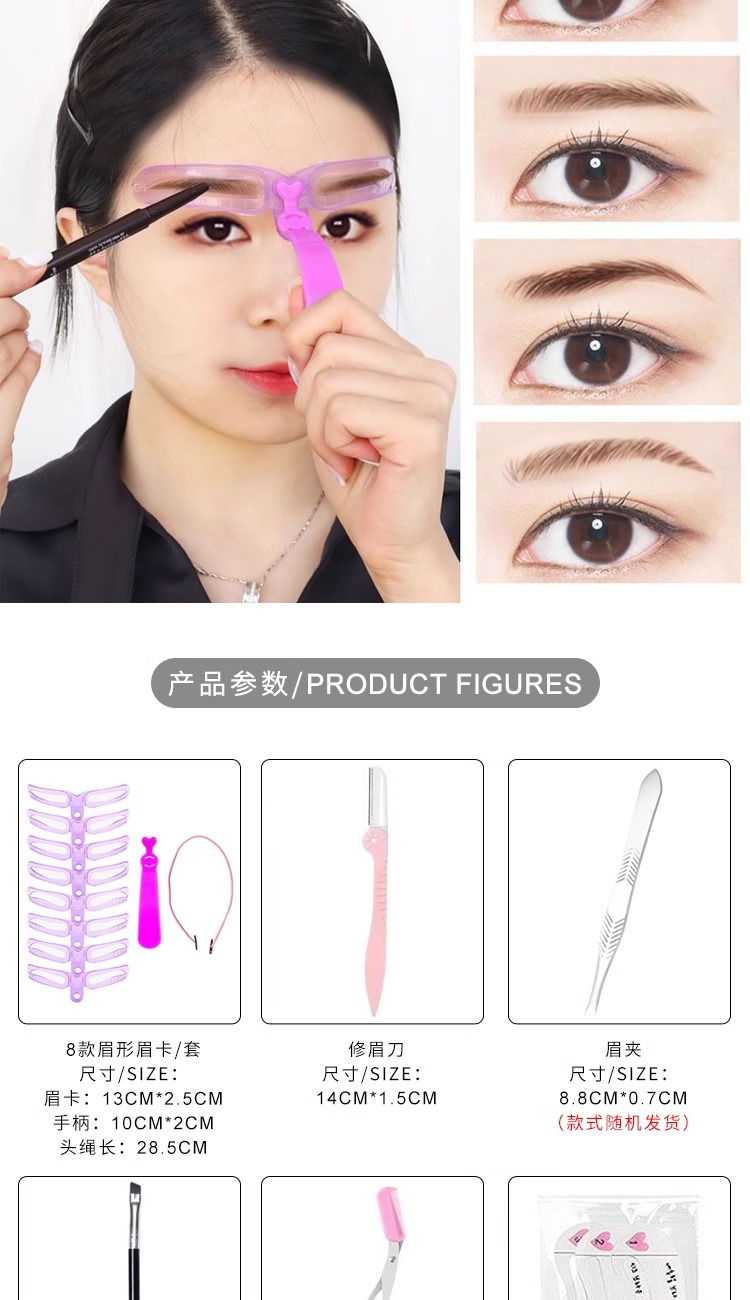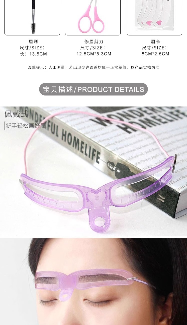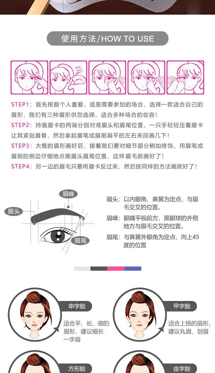 送料無料/眉毛描画補助具A1V-女性用ハンドヘルド眉カード一体型対称補助具