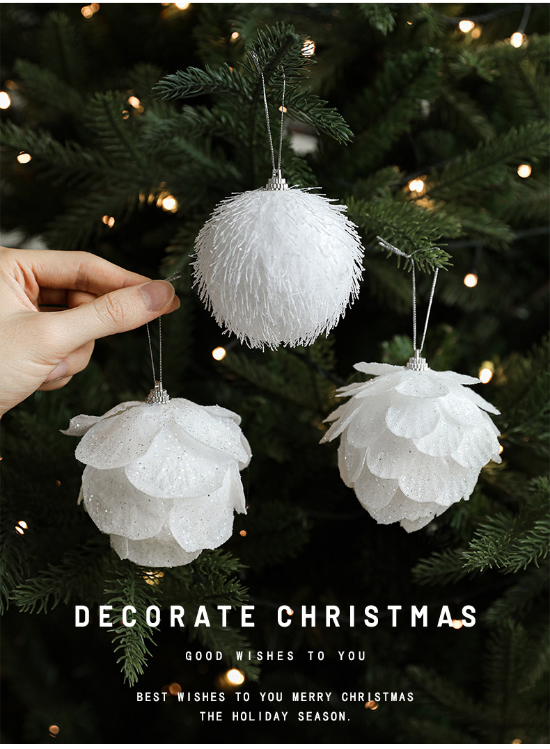 バブルクリスマスボール白い花びら装飾品粘粉クリスマスツリーペンダント雰囲気アレンジアクセサリー装飾品