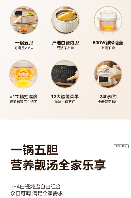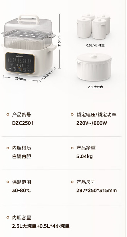一锅三胆婴儿电粥锅BB煲宝宝辅食机陶瓷隔水炖盅汤煲