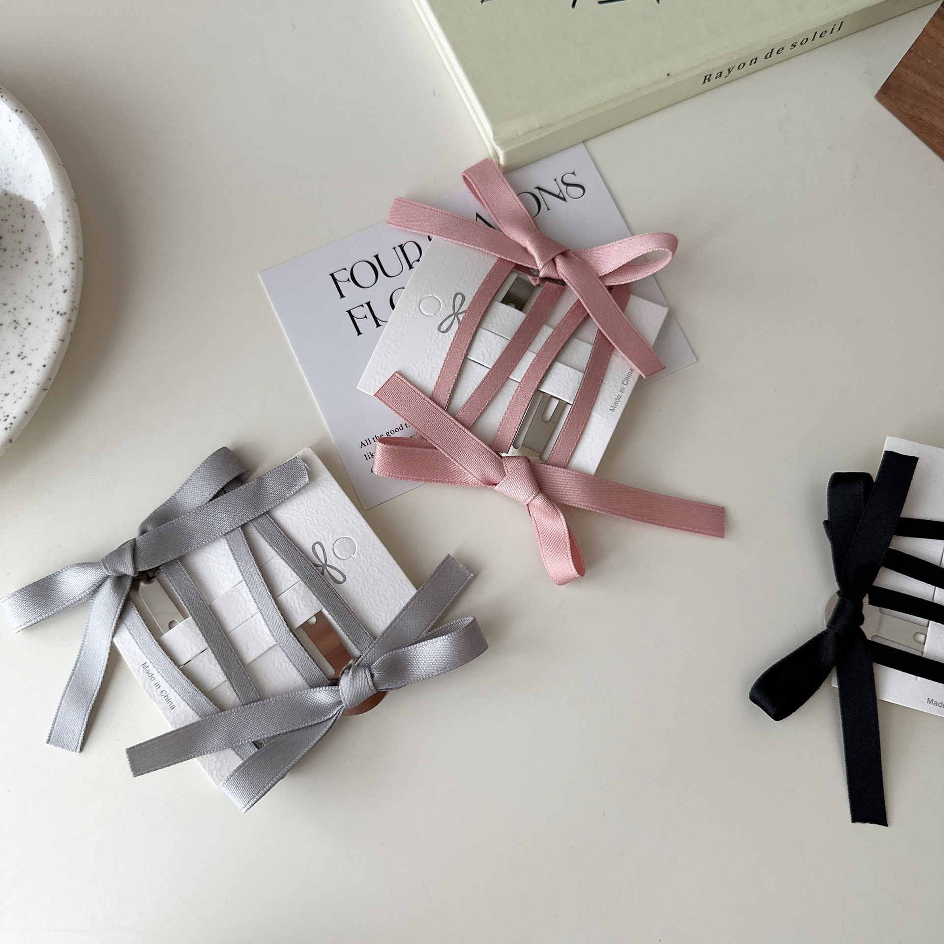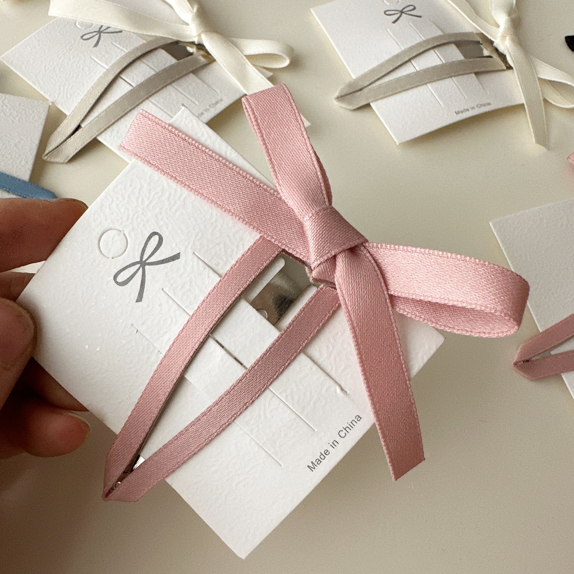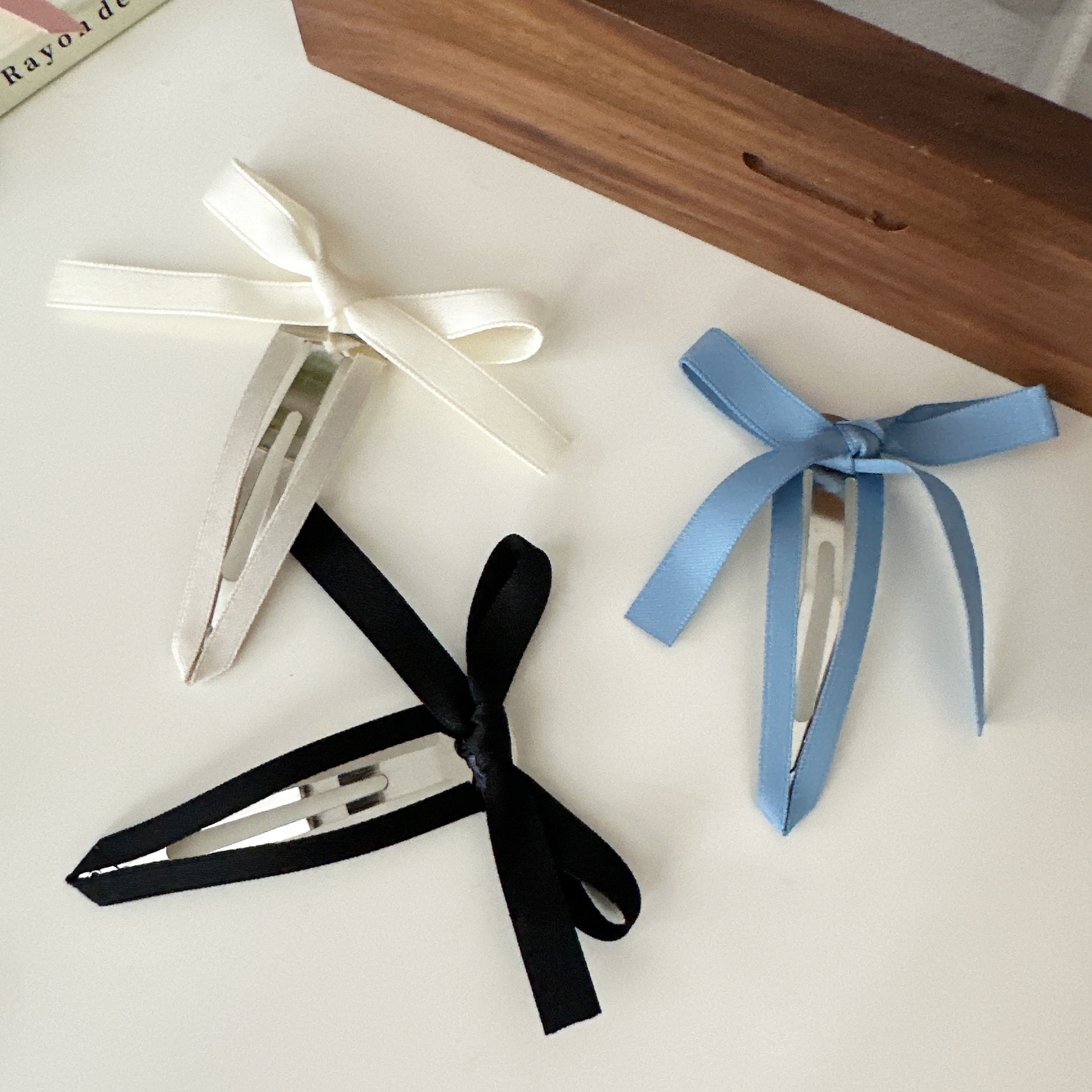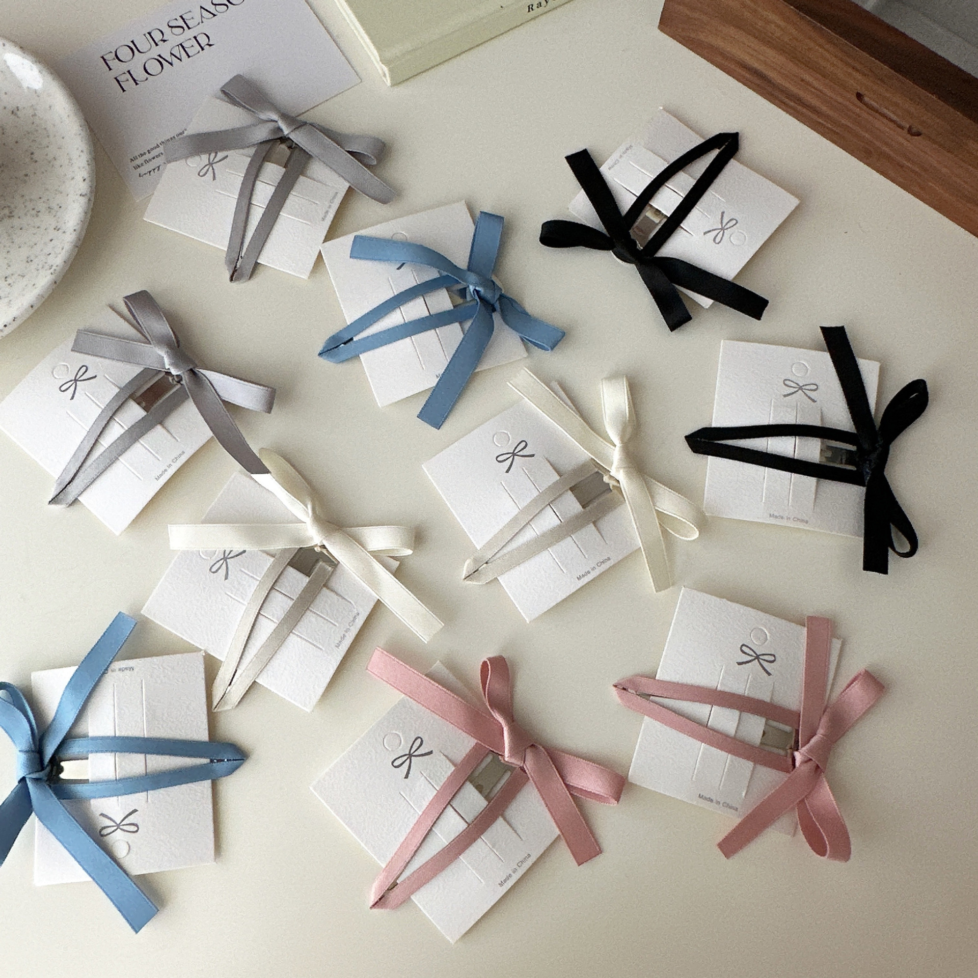 フランスの少女バレエ風リボンリボンのサイドクリップの大きいサイズのbbクリップの甘い気質の前髪クリップのカード