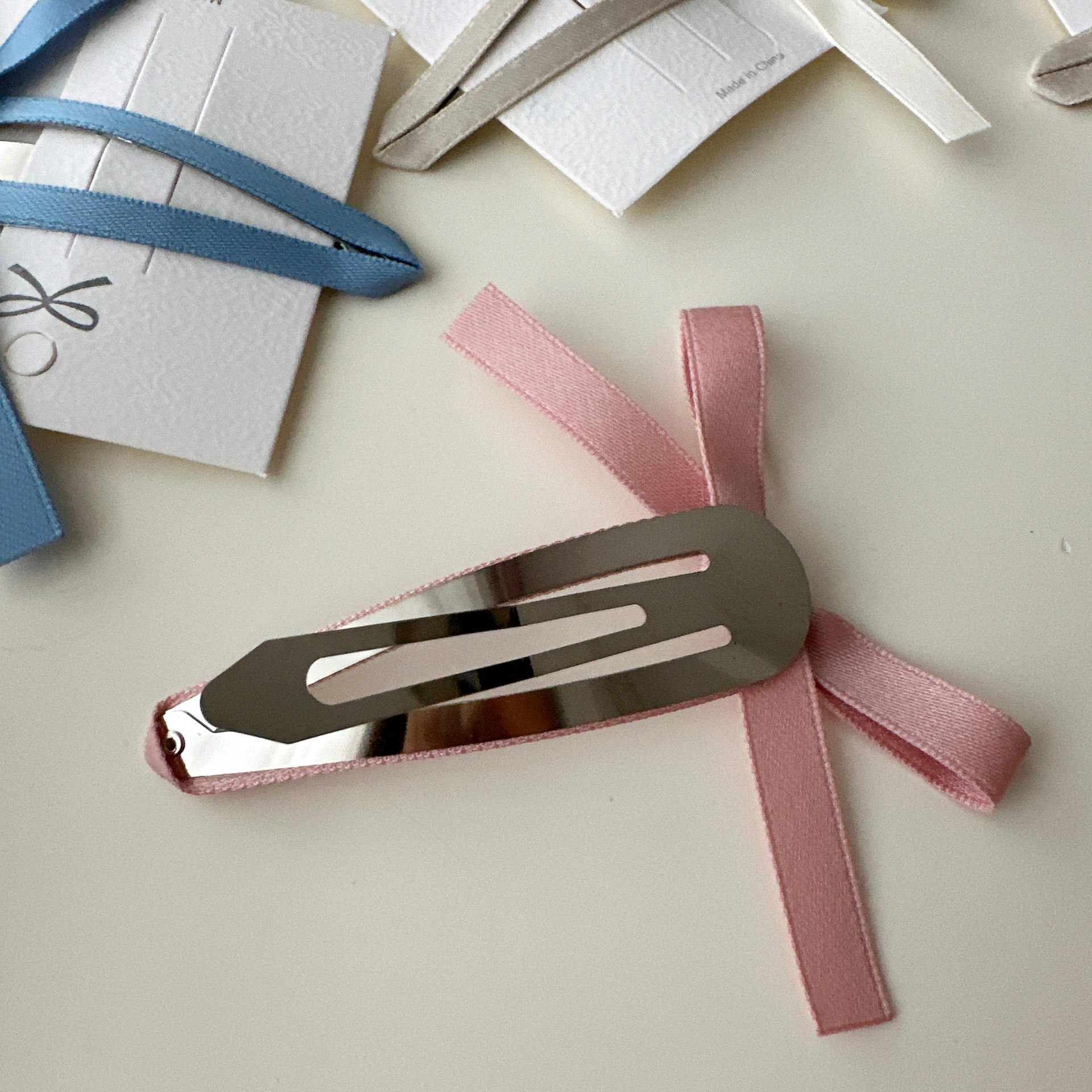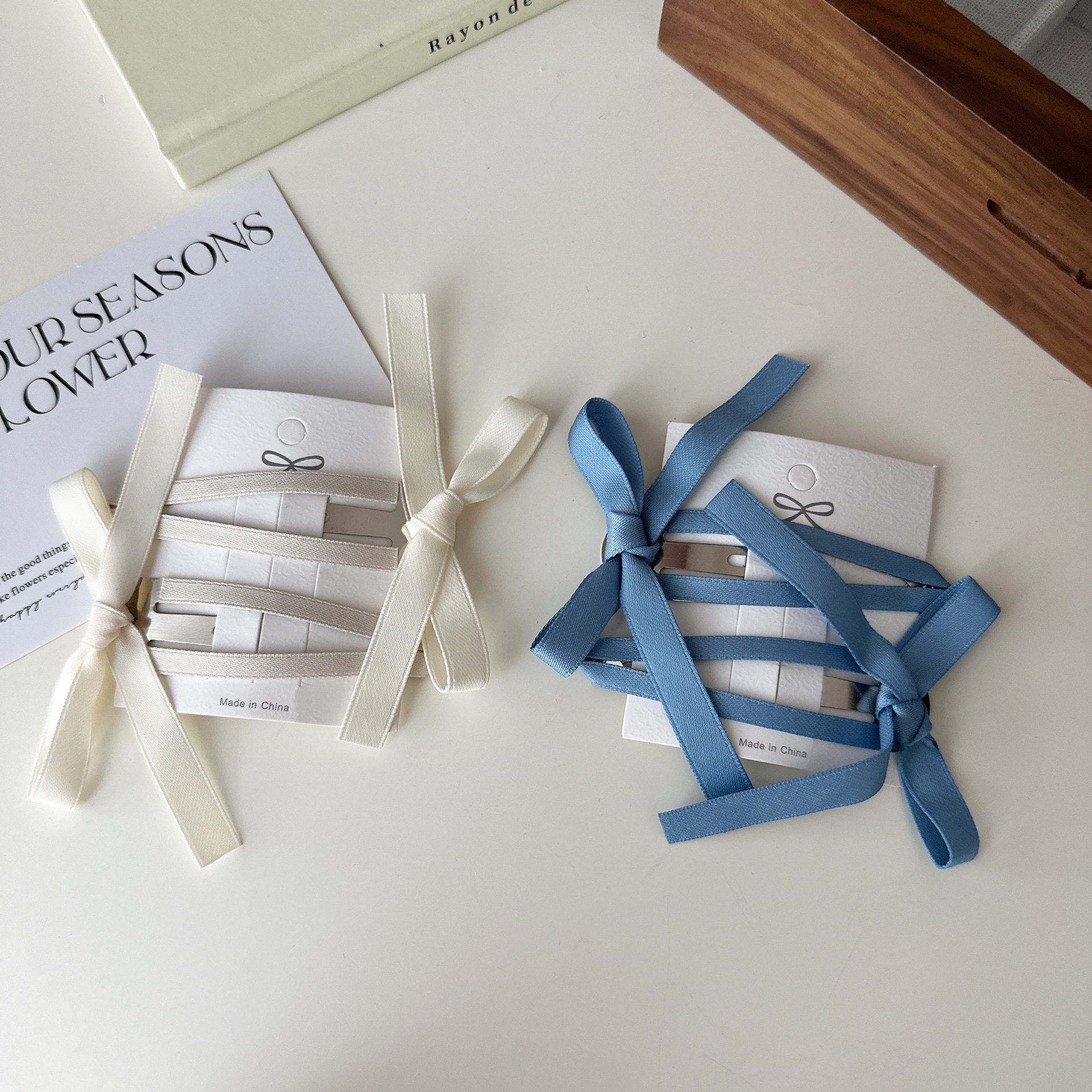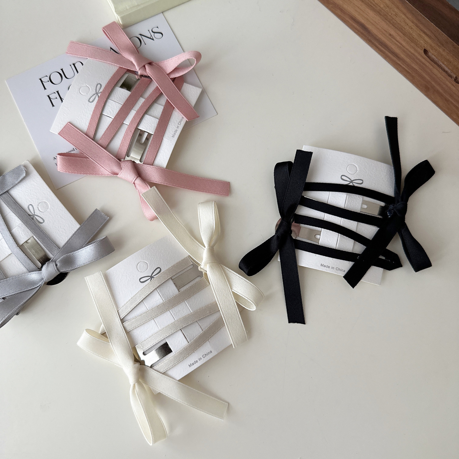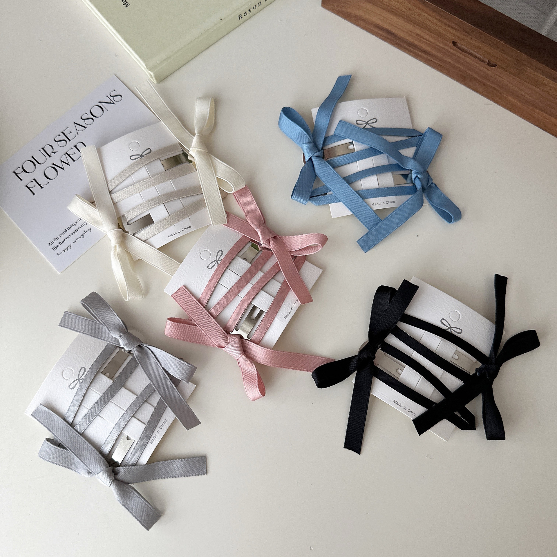 フランスの少女バレエ風リボンリボンのサイドクリップの大きいサイズのbbクリップの甘い気質の前髪クリップのカード