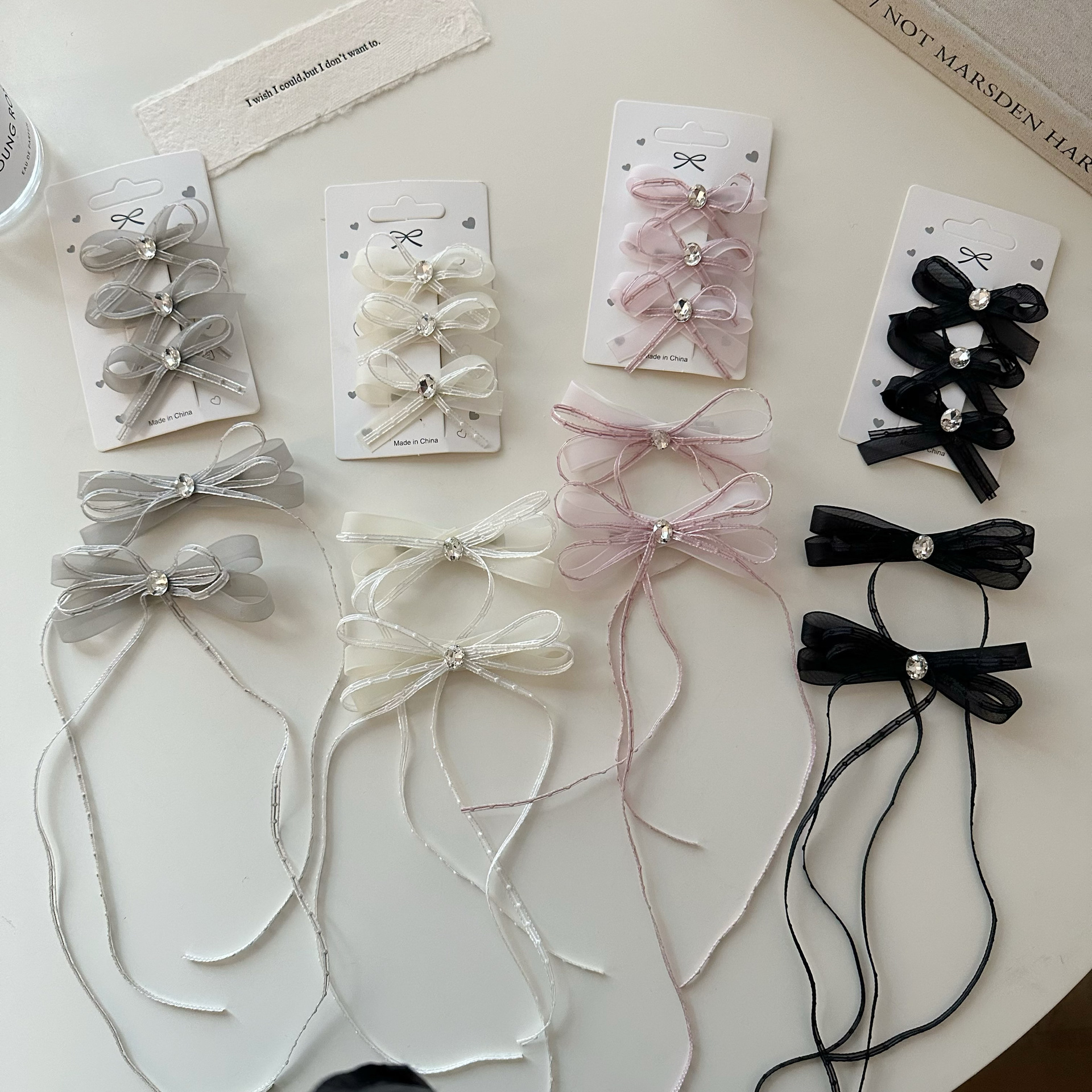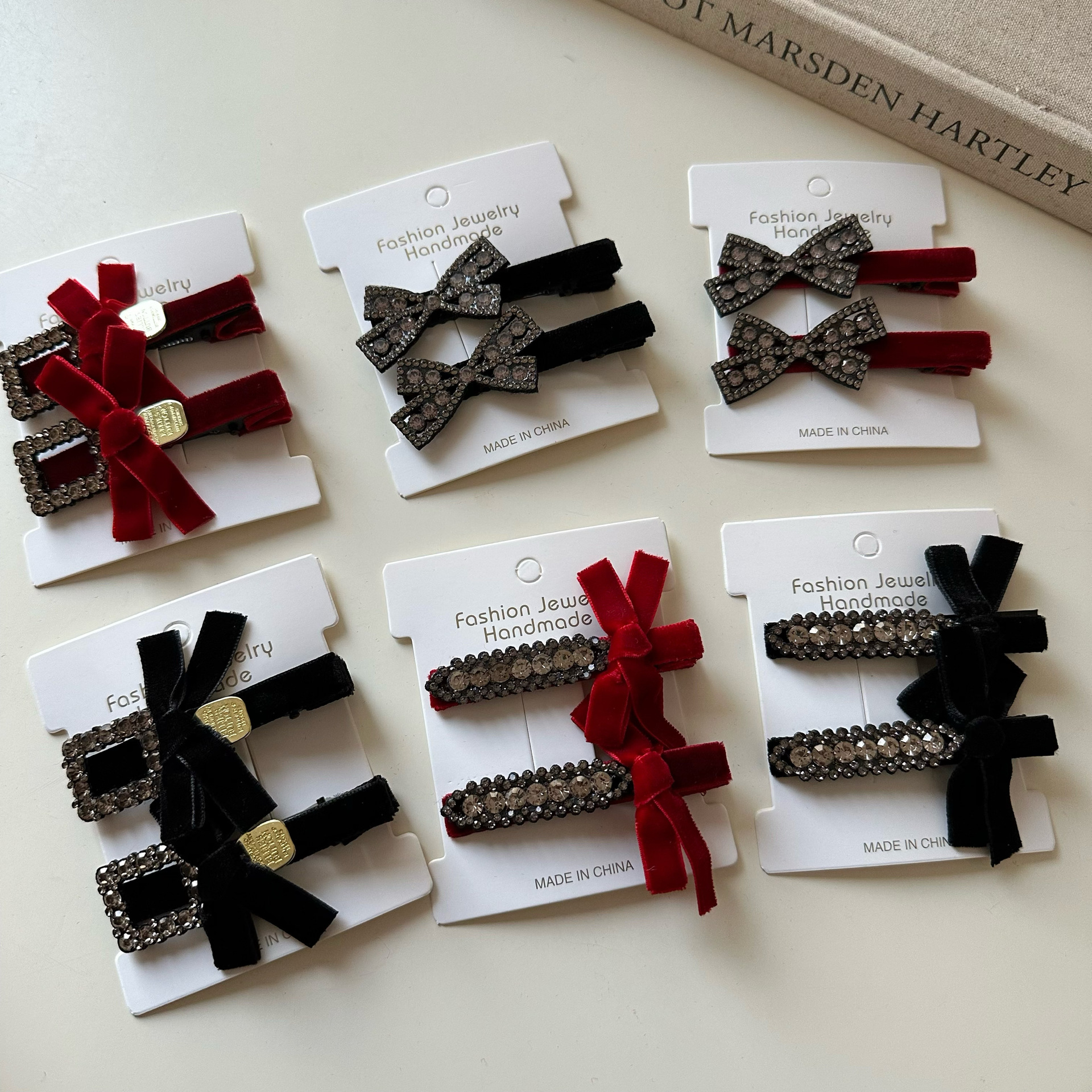 韓国風秋冬ベルベットラインストーンリボンヘアピン前髪サイドクリップヘアピン高級ヘアアクセサリーネットセレブと同じスタイル