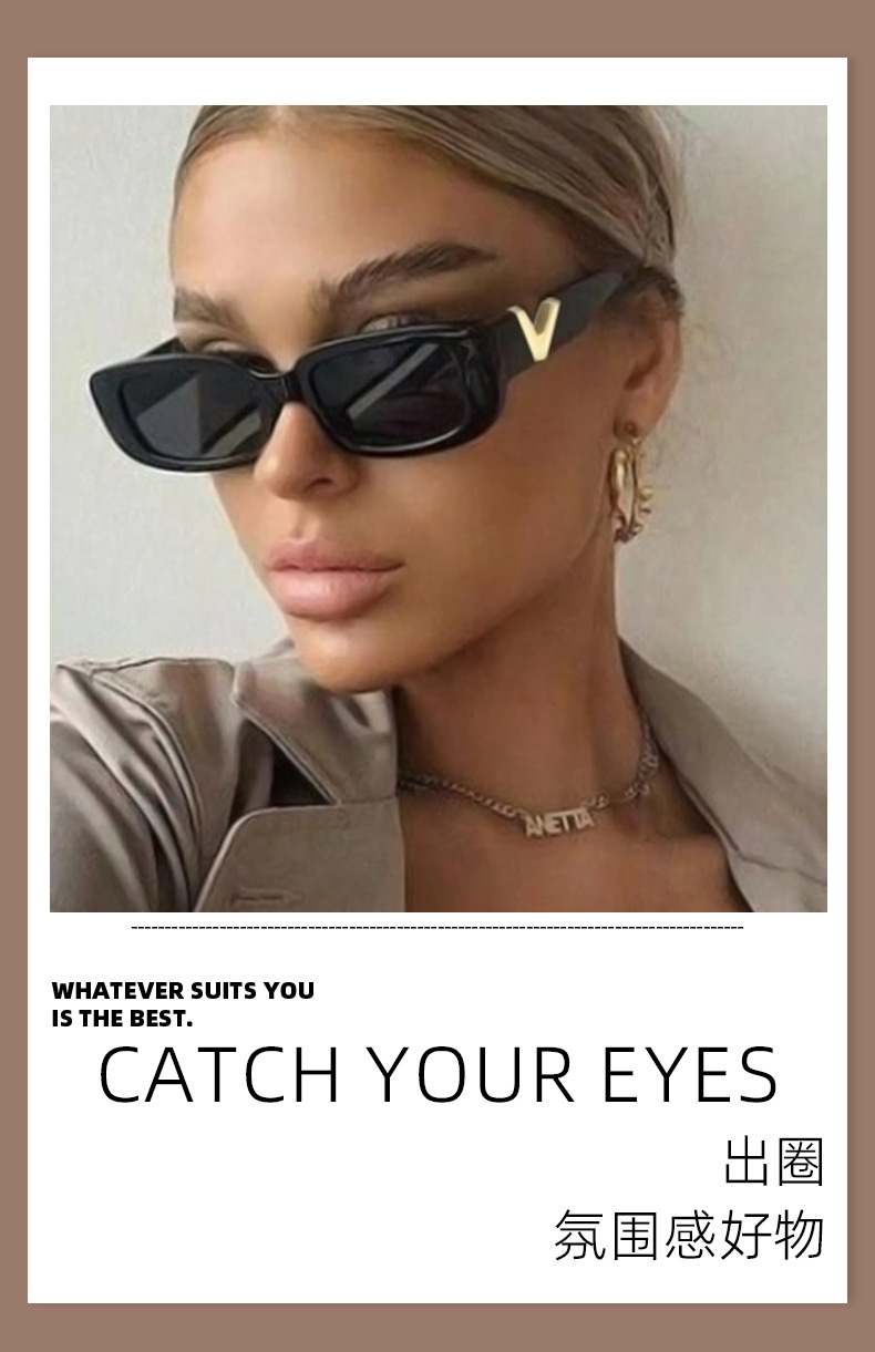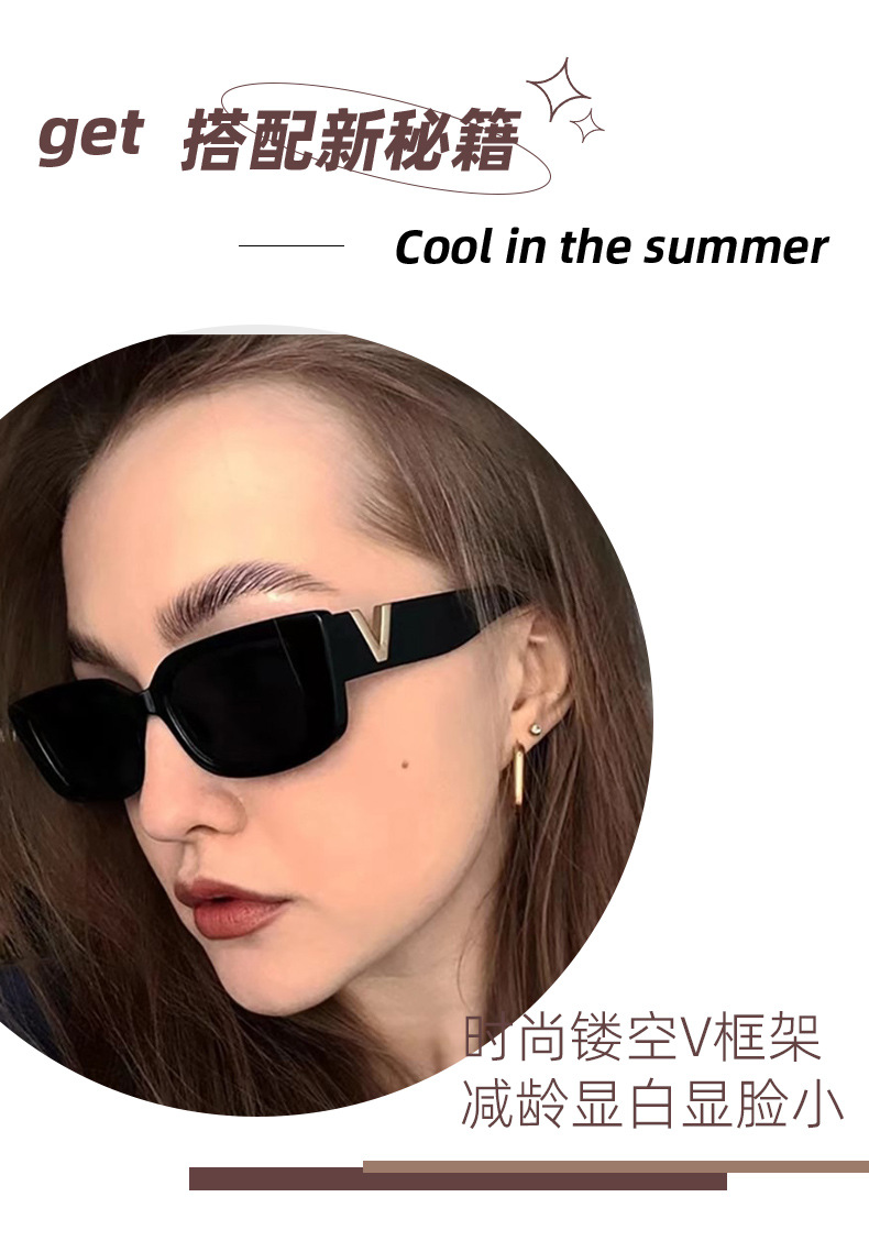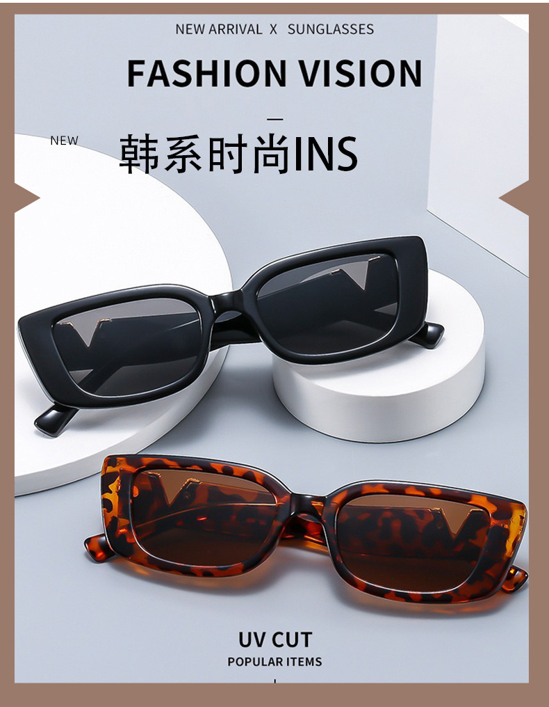 新型クロスボーダー欧米サングラス透かし彫りv角枠の四角いファッションレトロで白い街で撮影したins