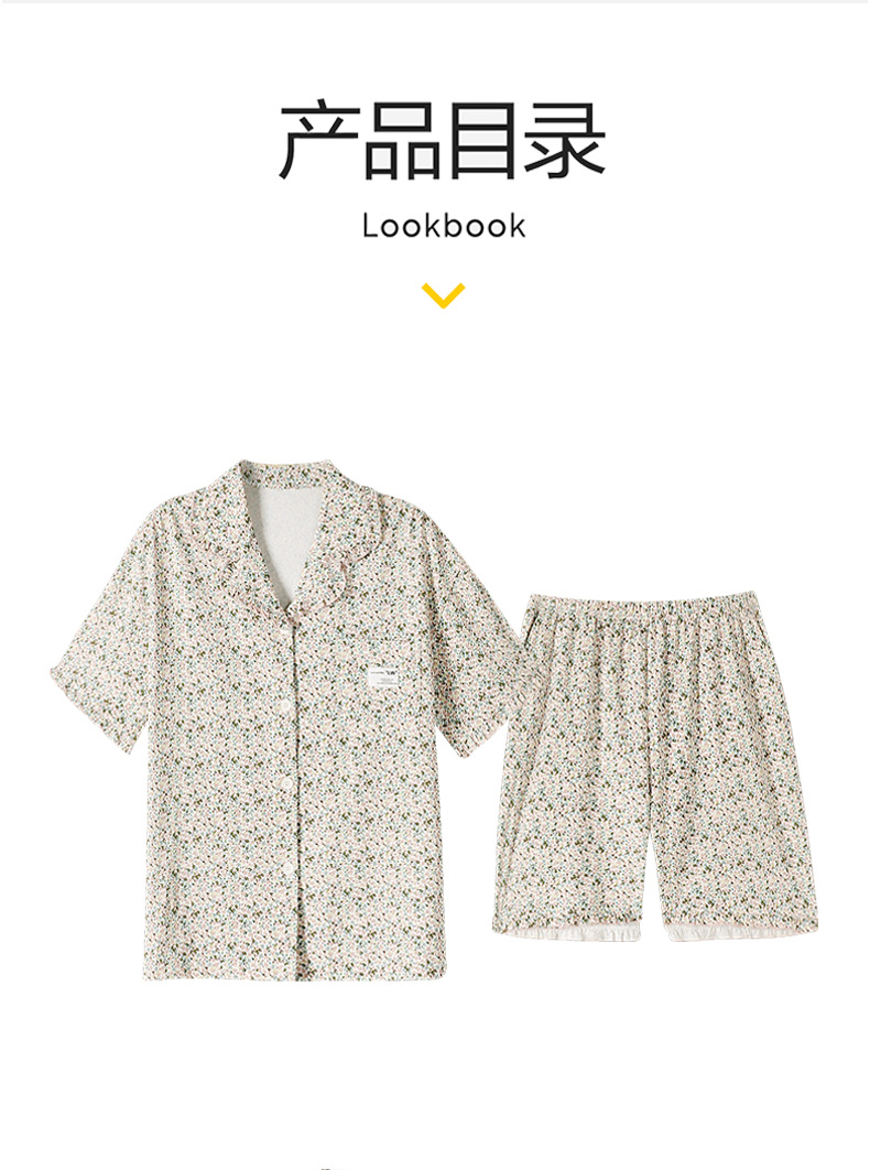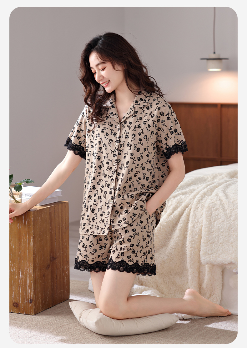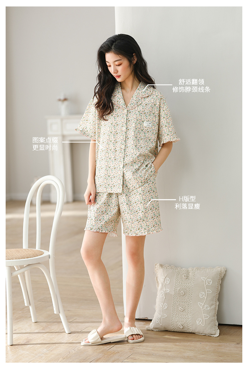 レディースパジャマ夏プルオーバー爽やかコットン半袖ショートパンツ新品折り襟カーディガン純綿夏高級感ホームウェア