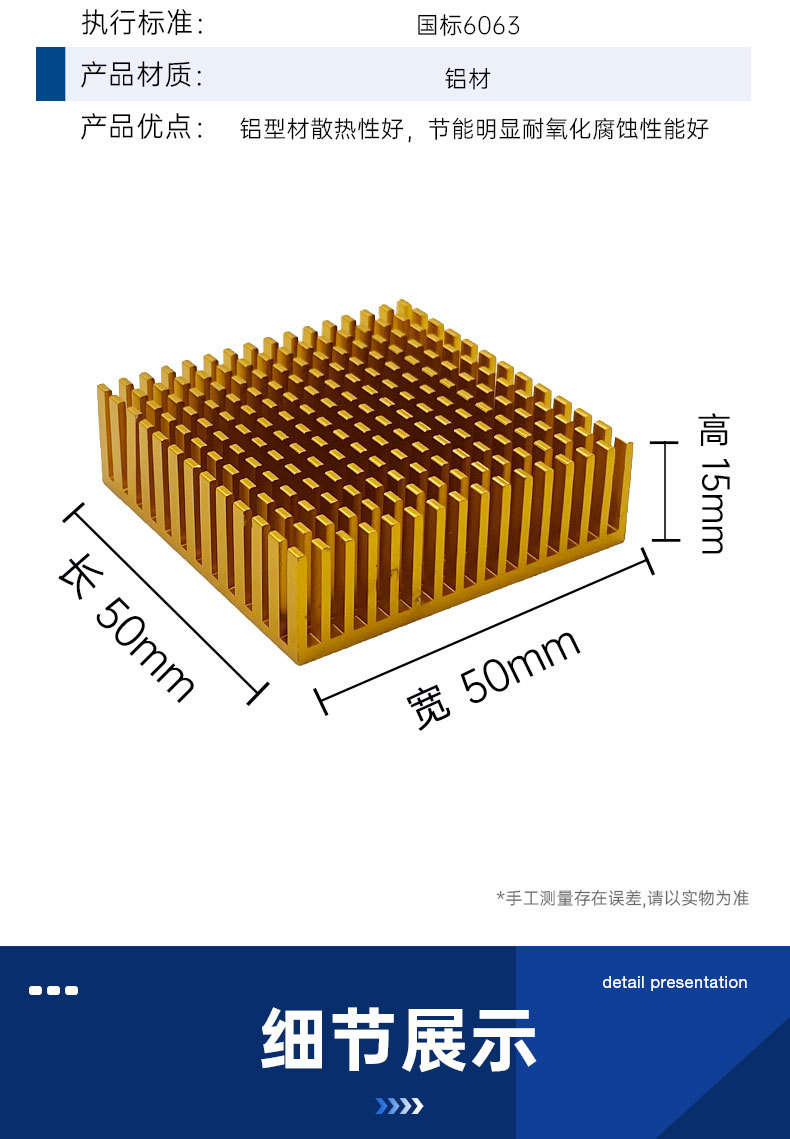 厂家直销电子散热片铝制6063散热器工业散热器制冷片50×50加工