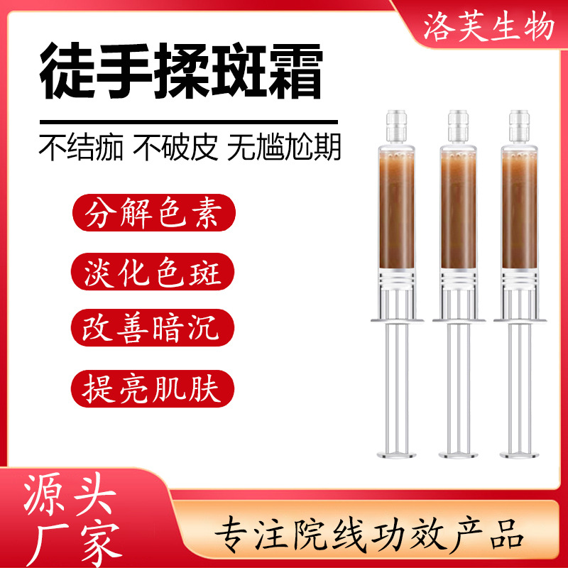 素手でシミクリームを揉み、美白でシミを取り除き、色素を分解して色をコントロールします。