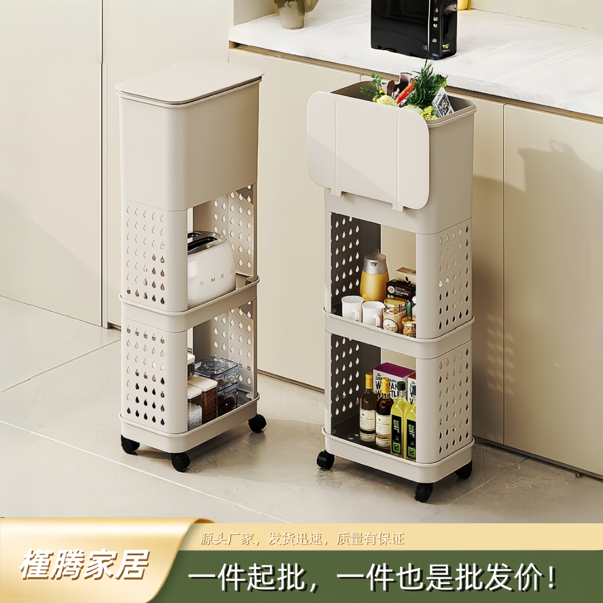 厨房垃圾桶家用大容量移动双层收纳垃圾桶置物架厨房多层置物架