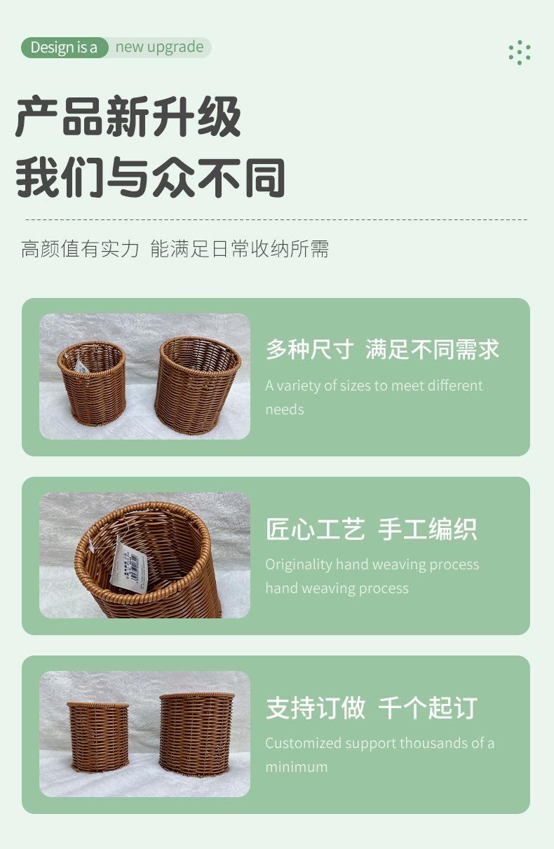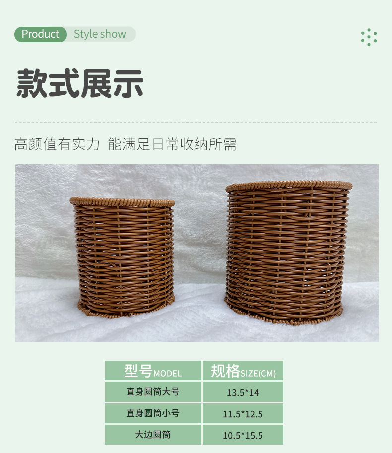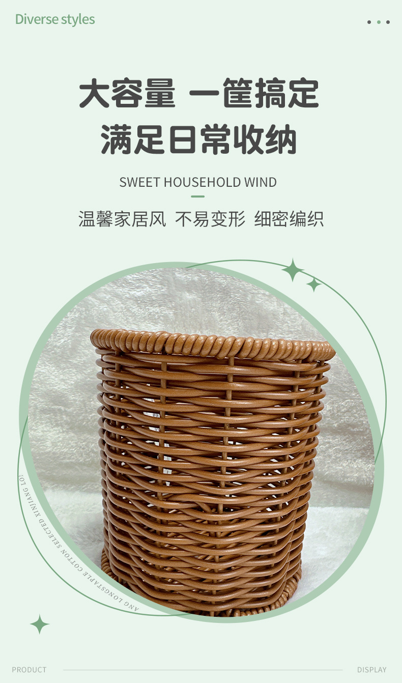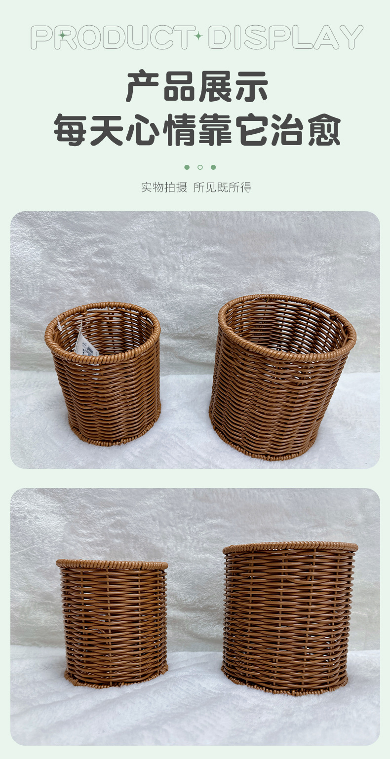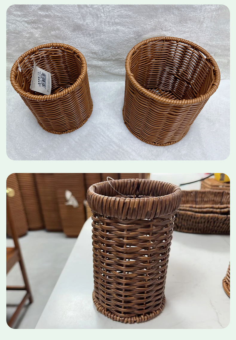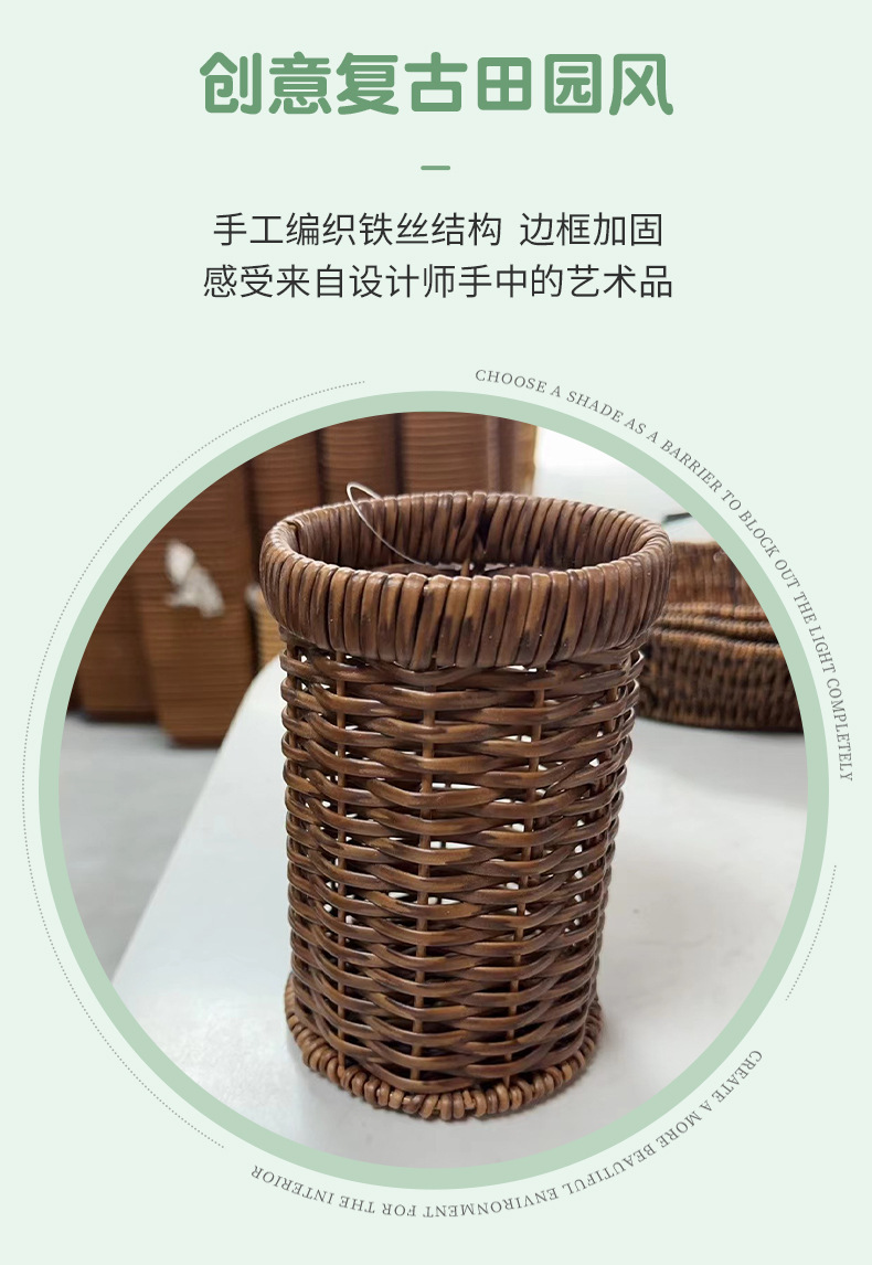 籐編み円形箸立てktvピーナッツドライフルーツ手作りレトロデスクトップ収納カゴ編み収納ペン立て