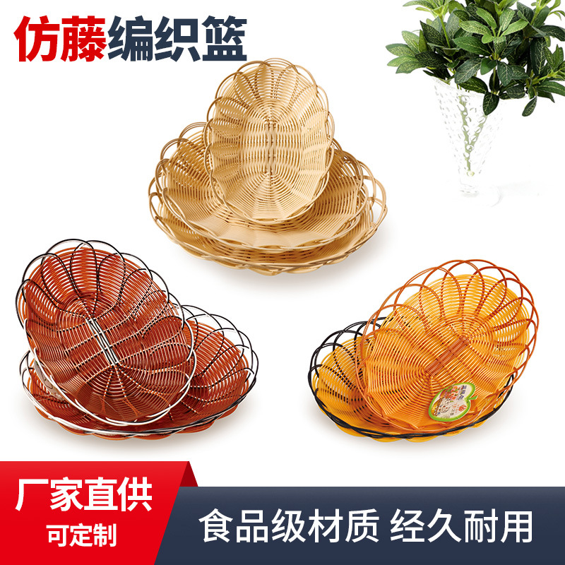模造藤果盤果物かごポテトフライ軽食かご藤編収納かごスーパー陳列枠展示パンかご