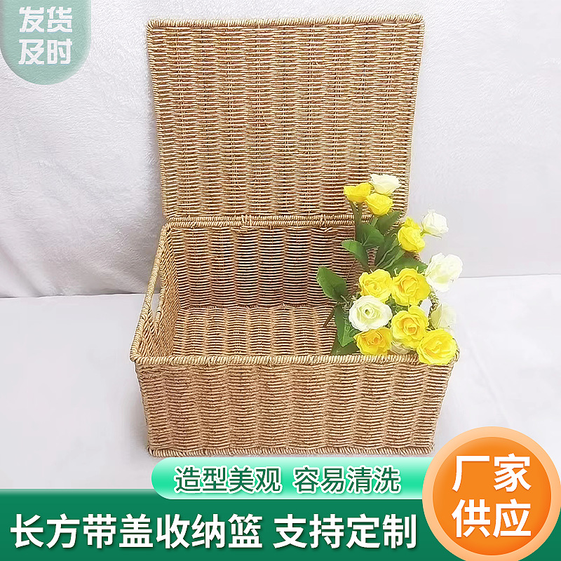メーカー卸売り家庭用品バスケット台所果物野菜収納バスケット手作り編みレース模造籐バスケット小食籐バスケット