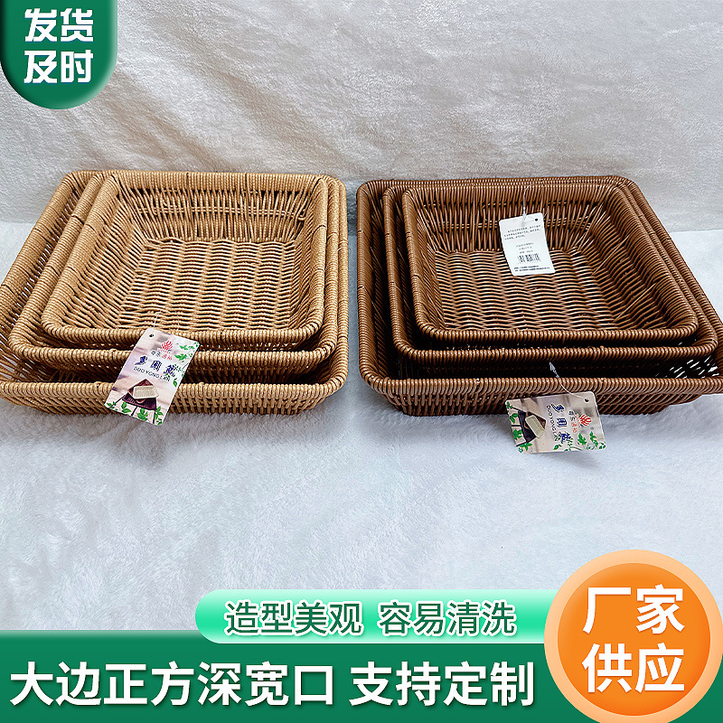 家庭用正方形フルーツプレート模造籐編みプラスチック収納バスケットスナックパンキャンディースナックプラスチックバスケット