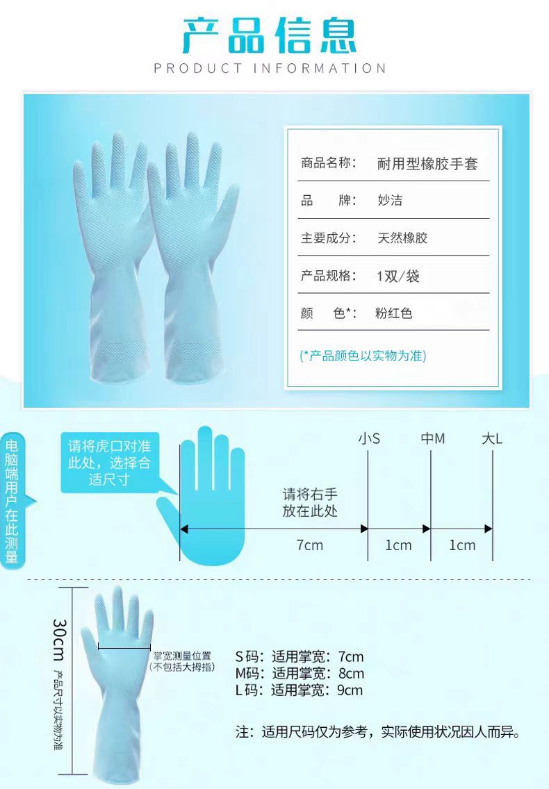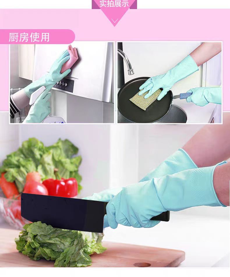 妙潔皿洗い手袋キッチン家事耐久性ゴム皮洗濯女性防水キッチンラテックス手袋清潔