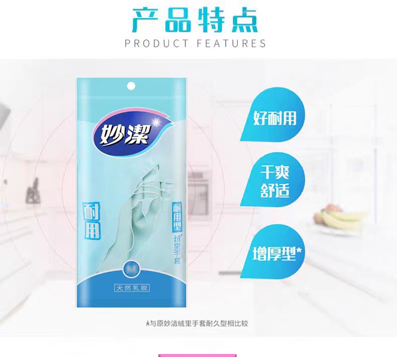 妙潔皿洗い家庭用手袋家事ゴム洗濯台所耐久性防水ベルベット清潔ラテックス耐摩耗性