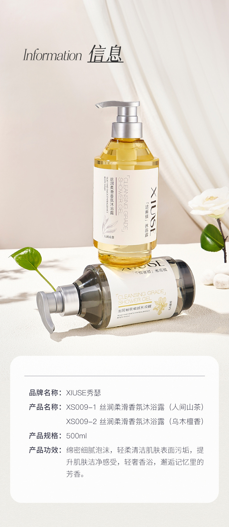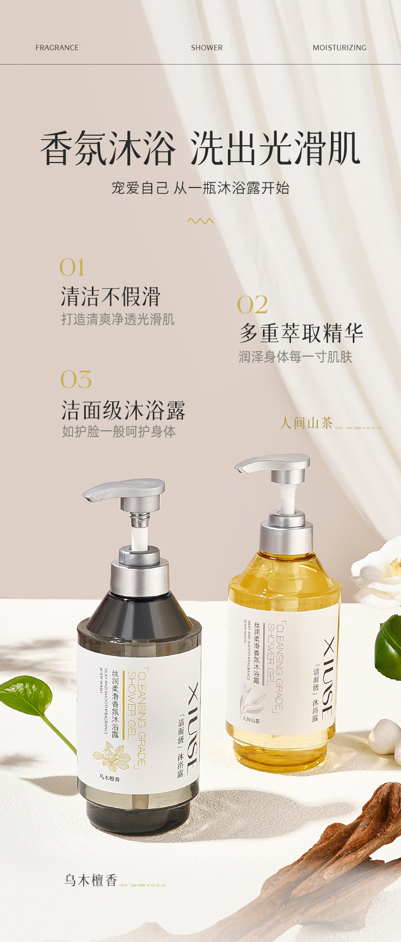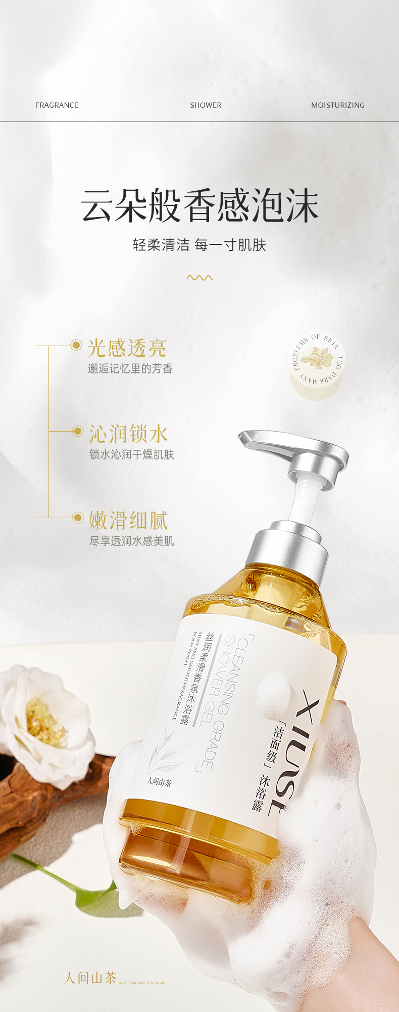 秀瑟のしなやかな香りの入浴剤は綿密で繊細で柔らかい肌を潤い、保湿、香りが持続します。