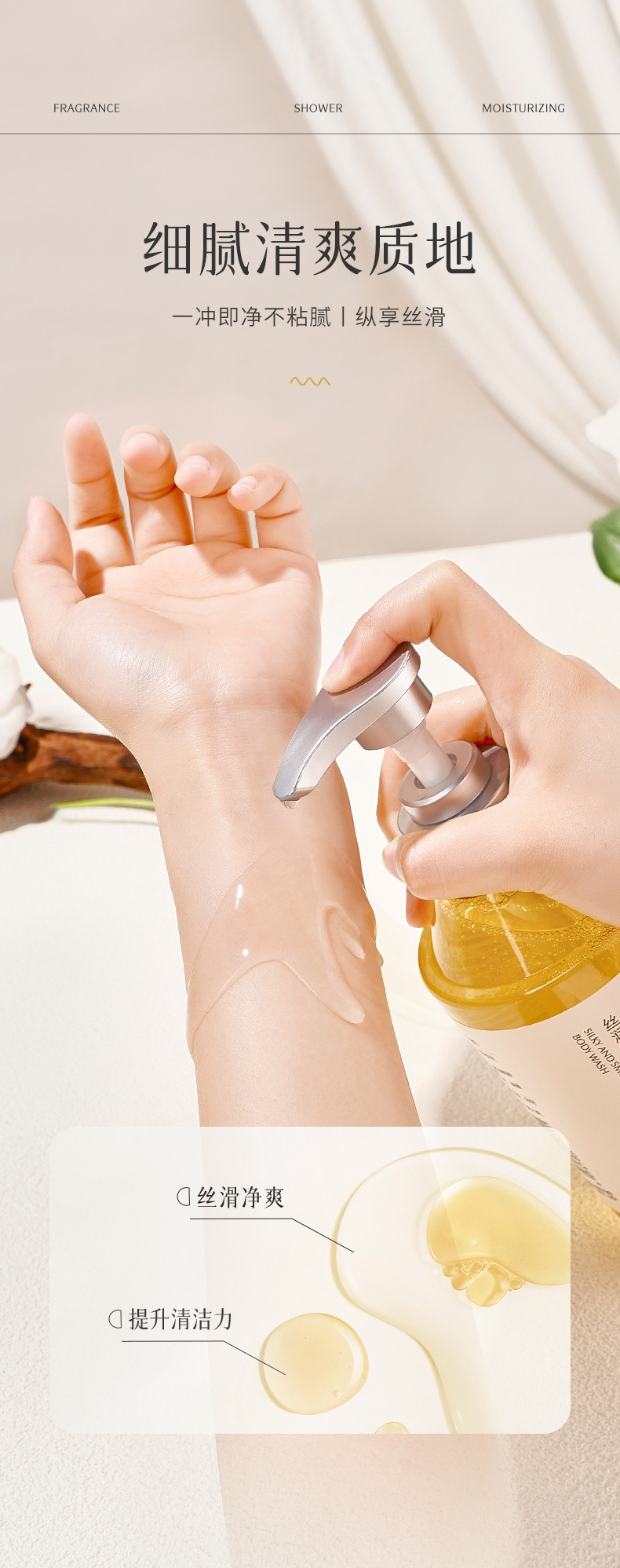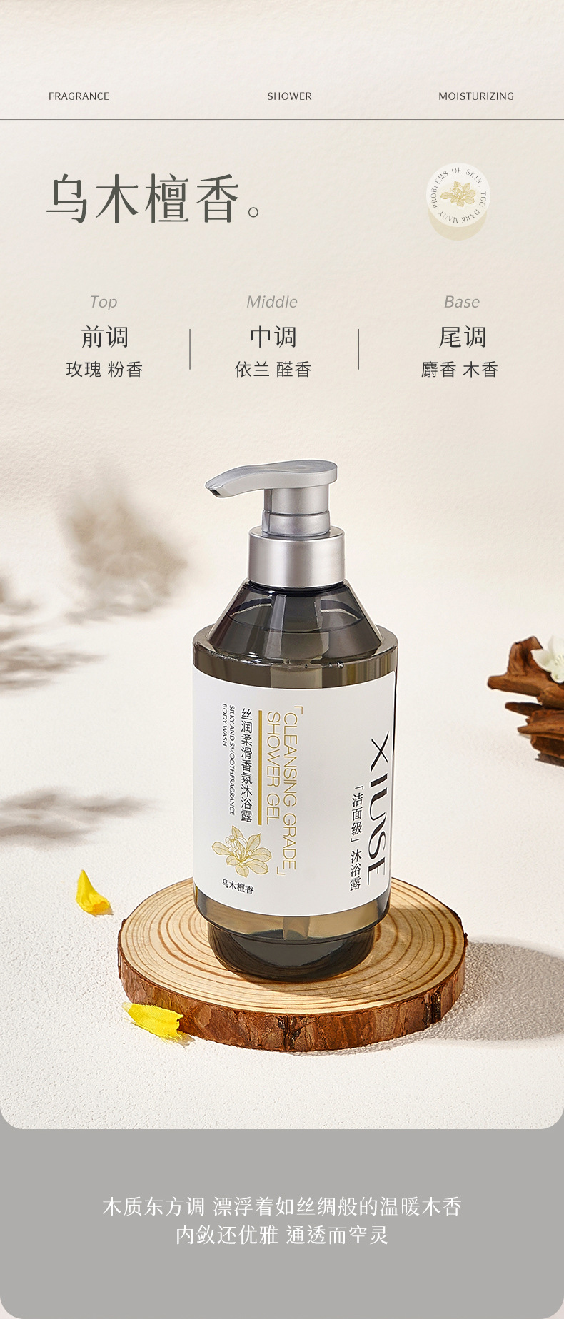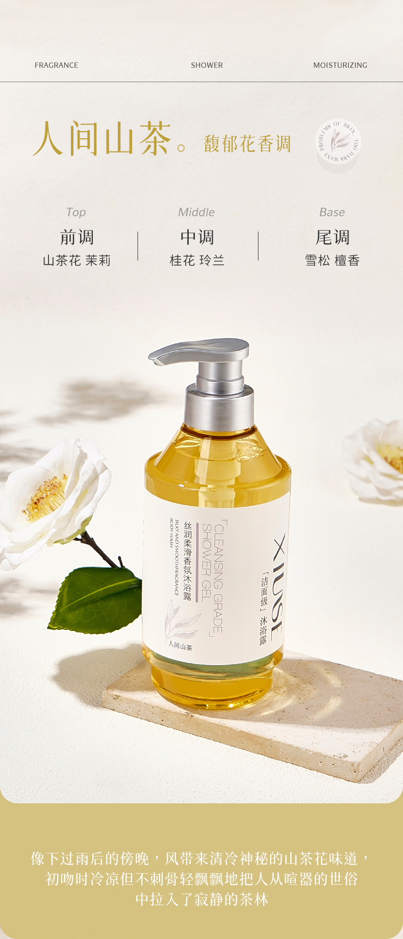 秀瑟のしなやかな香りの入浴剤は綿密で繊細で柔らかい肌を潤い、保湿、香りが持続します。