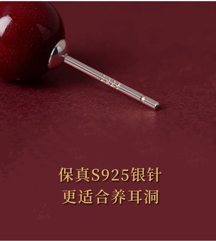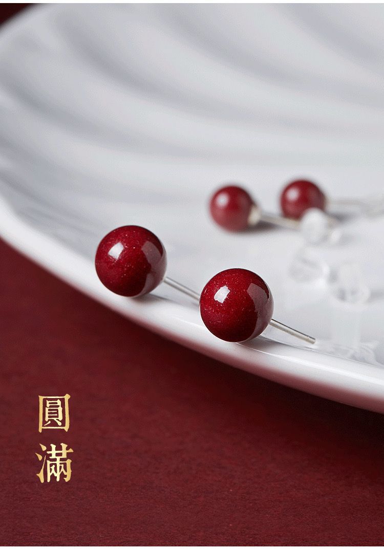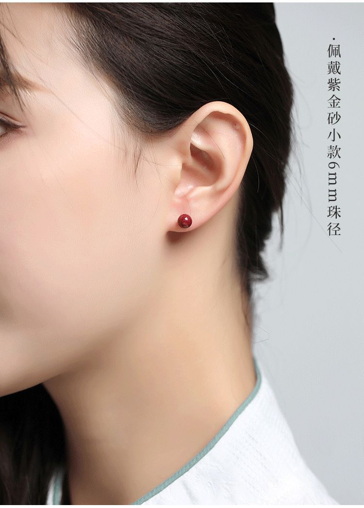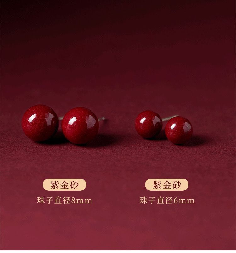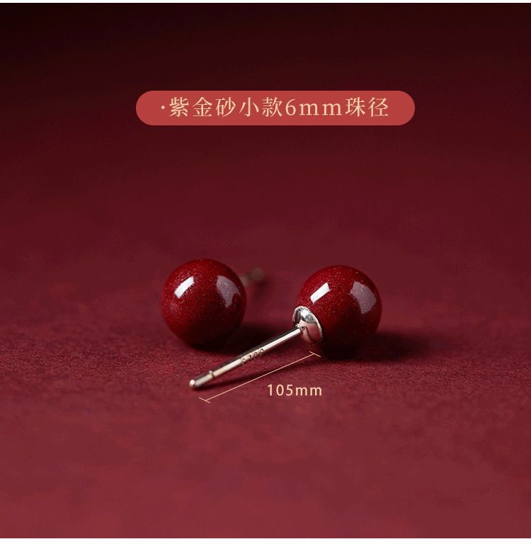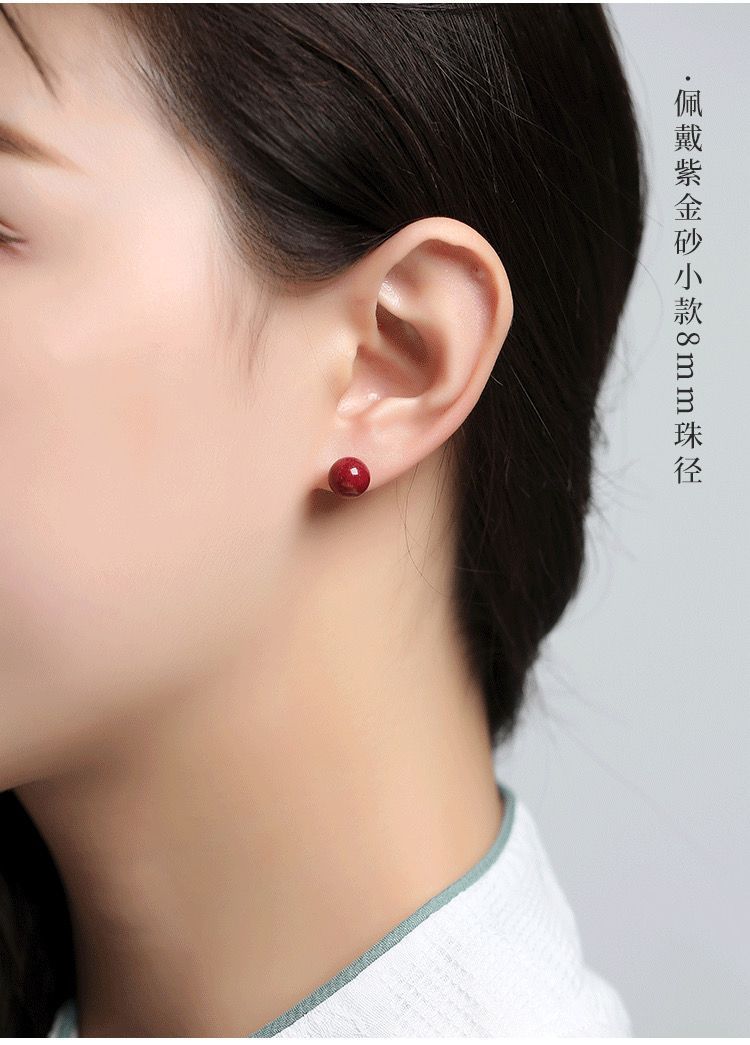 保真朱砂s925銀ピアス紫砂円珠金女紅本命年耳落ち高気質カップル祭りプレゼント