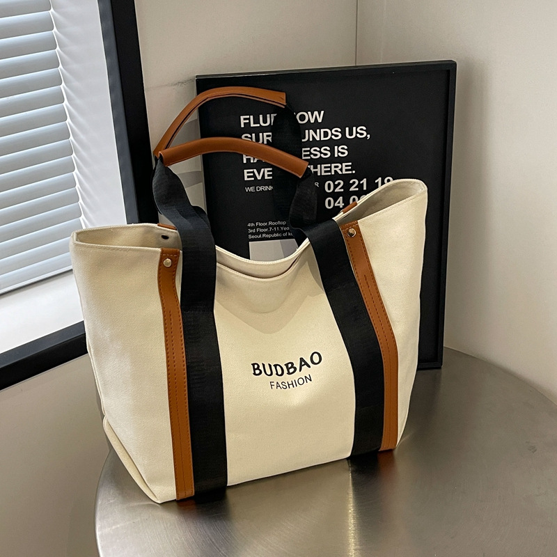 大容量ストライプコントラストキャンバスバッグファッショナブルなレディースショルダーバッグカジュアル学生通勤ポータブルトートバッグ