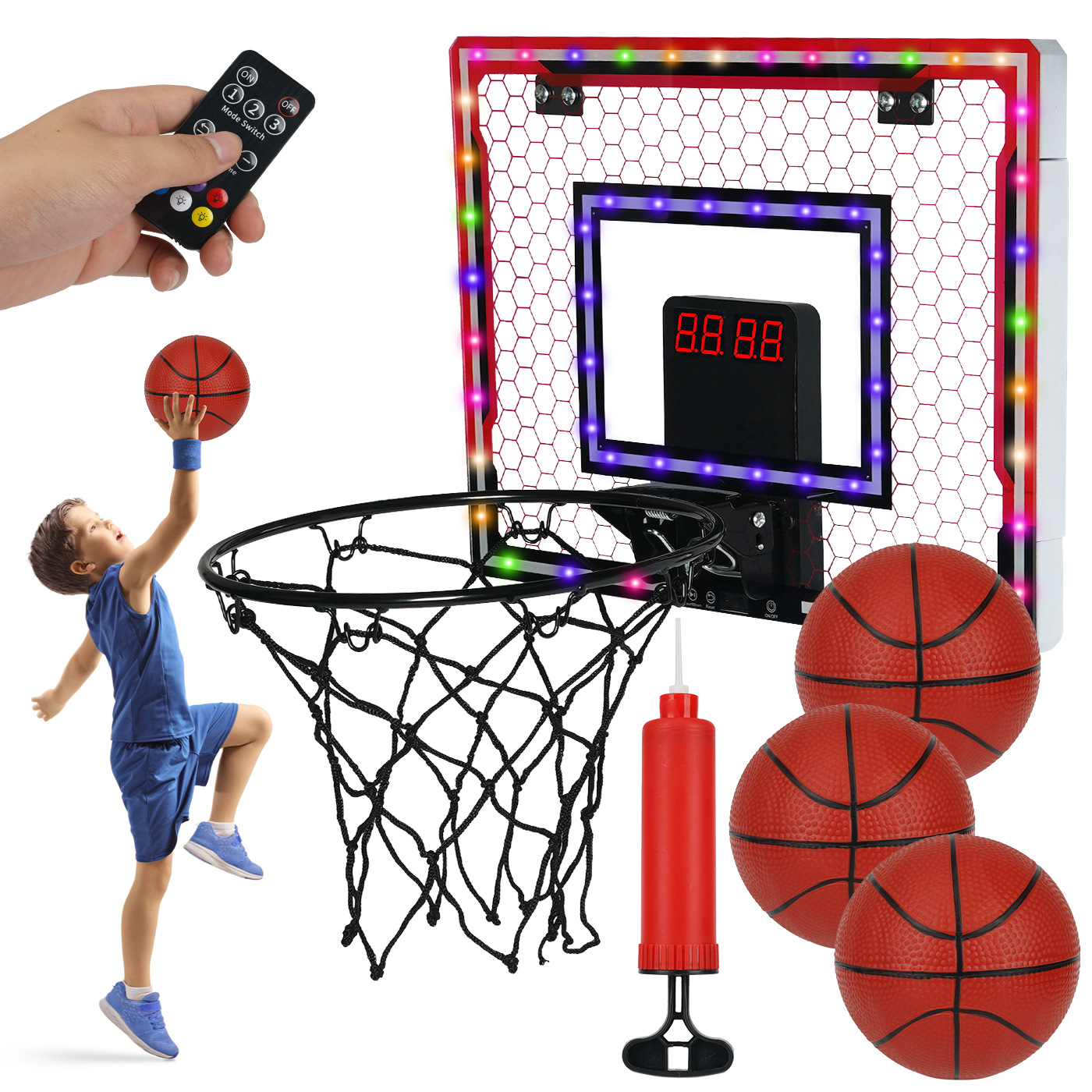 高さを調整できる昇降可能なクロスボーダー子供用バスケットボールスタンド、スコアカウンター、タイミング、LEDライト、リモコン