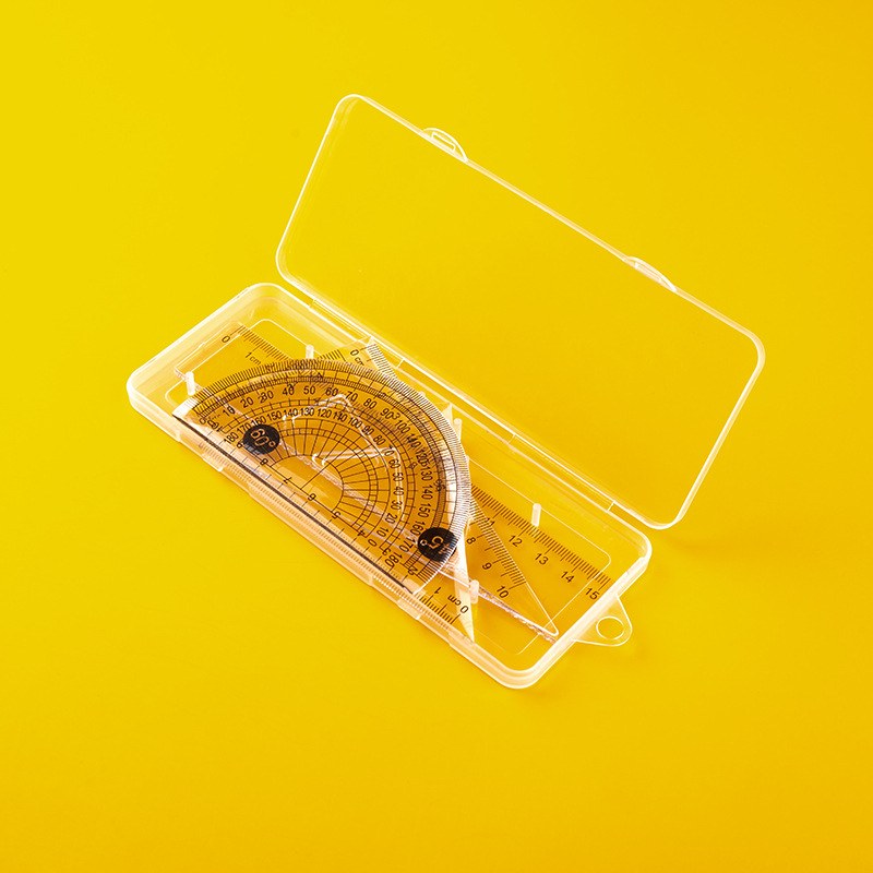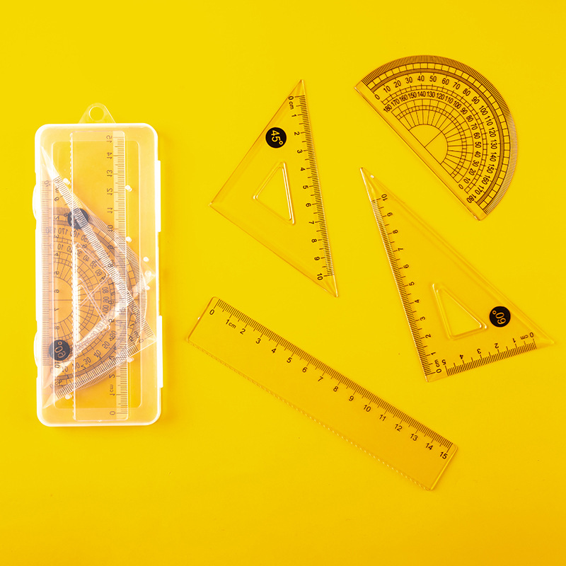 アクリルセット広告尺4pc 15cm学生児童セット定規波4点セットケース透明プラスチック卸売り