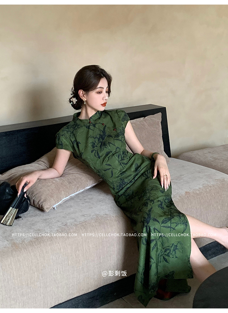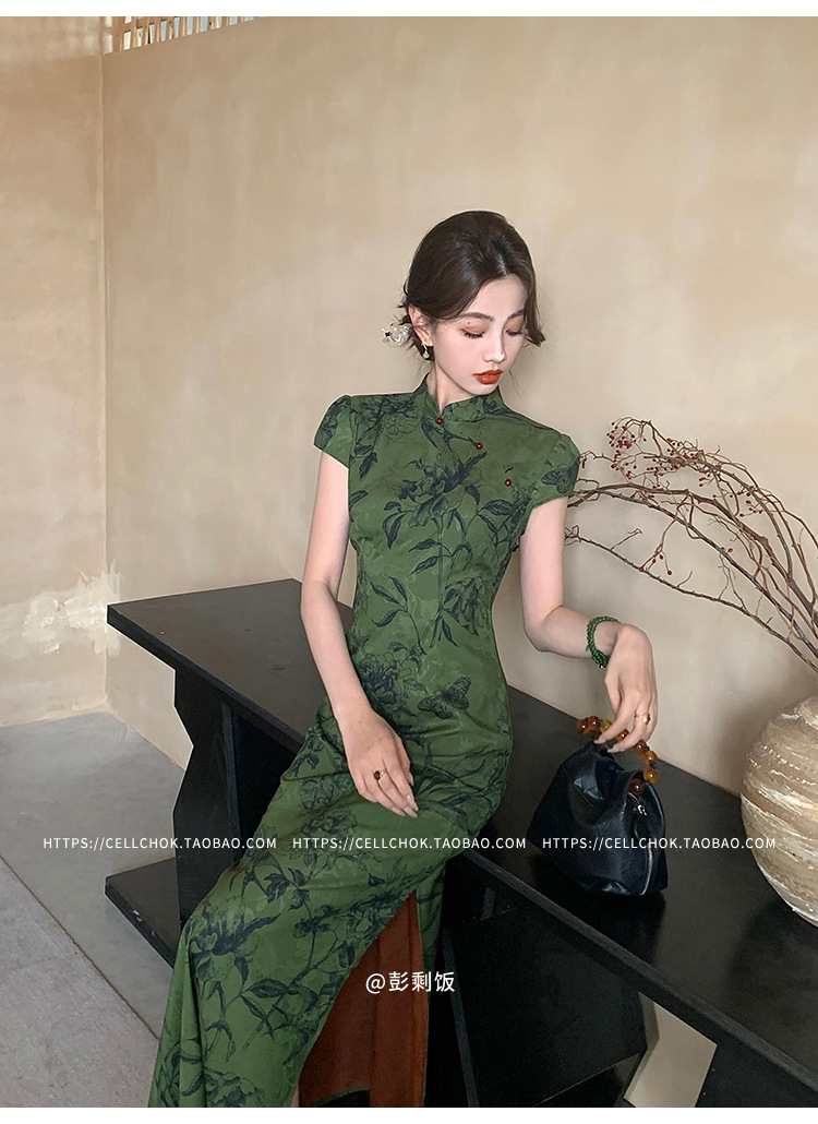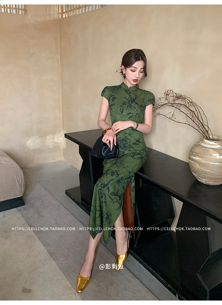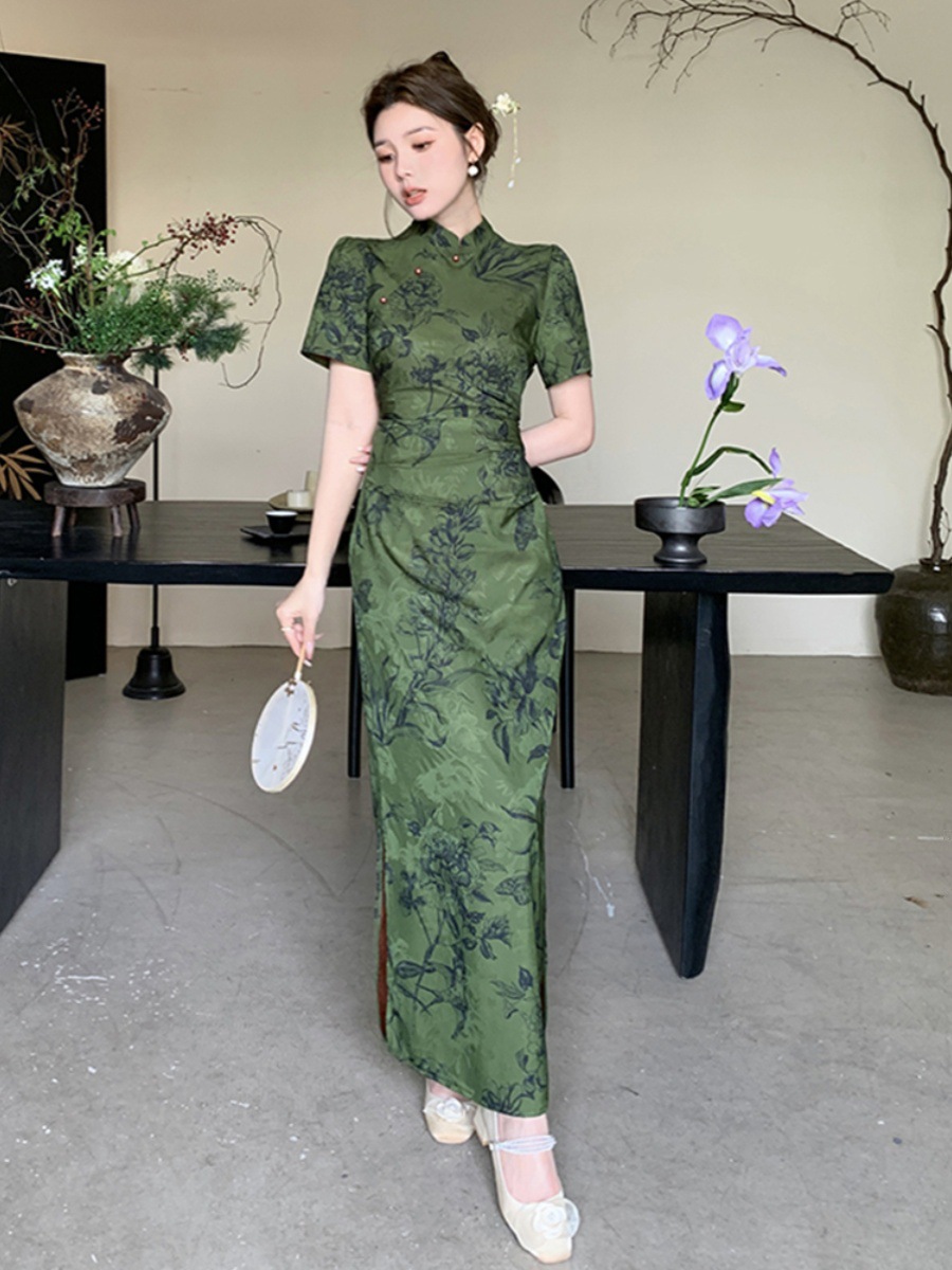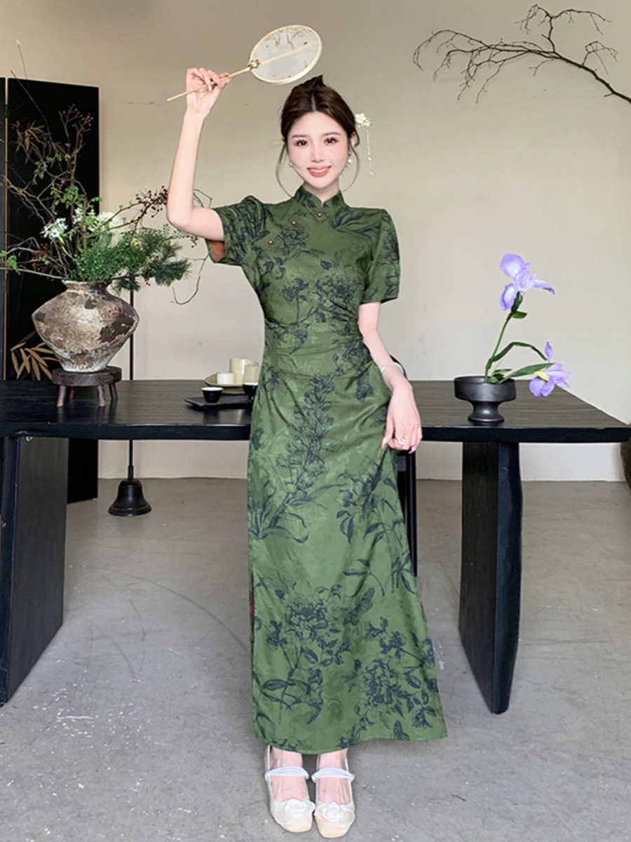 2025年夏新作 レトロな新中国風ワンピース レディース 高級感のあるスタンドカラー改良版旗袍ロングスカート