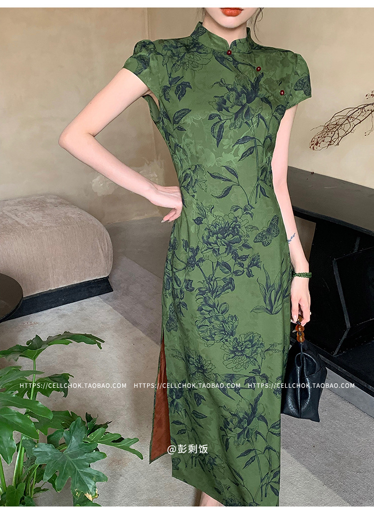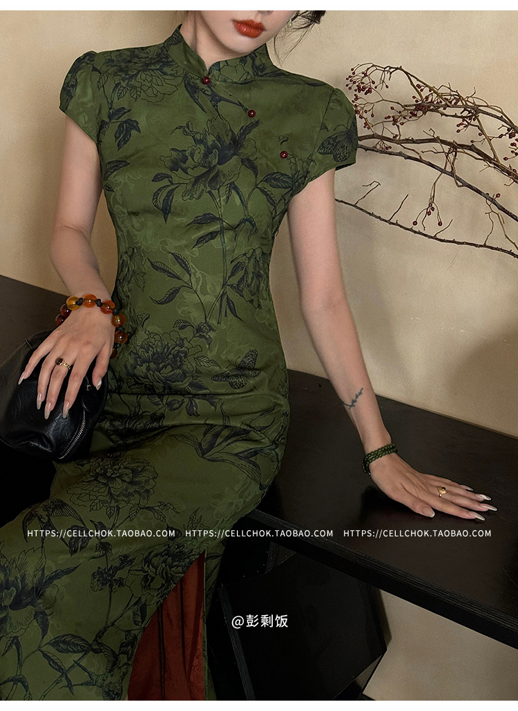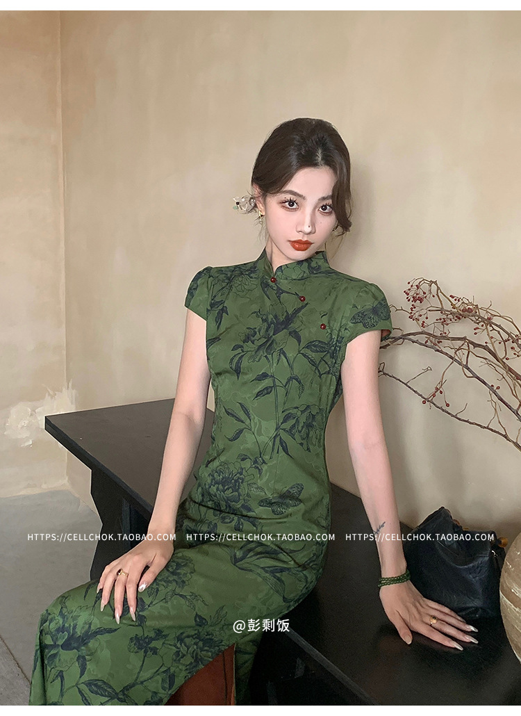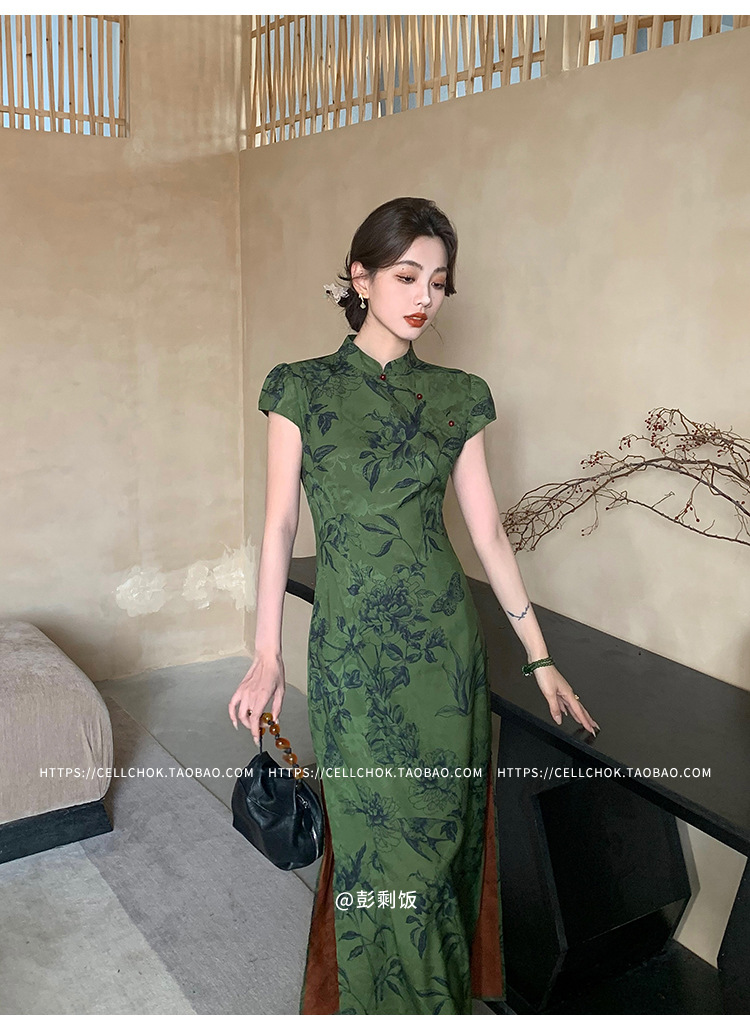 抹茶 2025 春夏新作ピンクジャカード改良チャイナドレスエレガントガール新作チャイナドレス