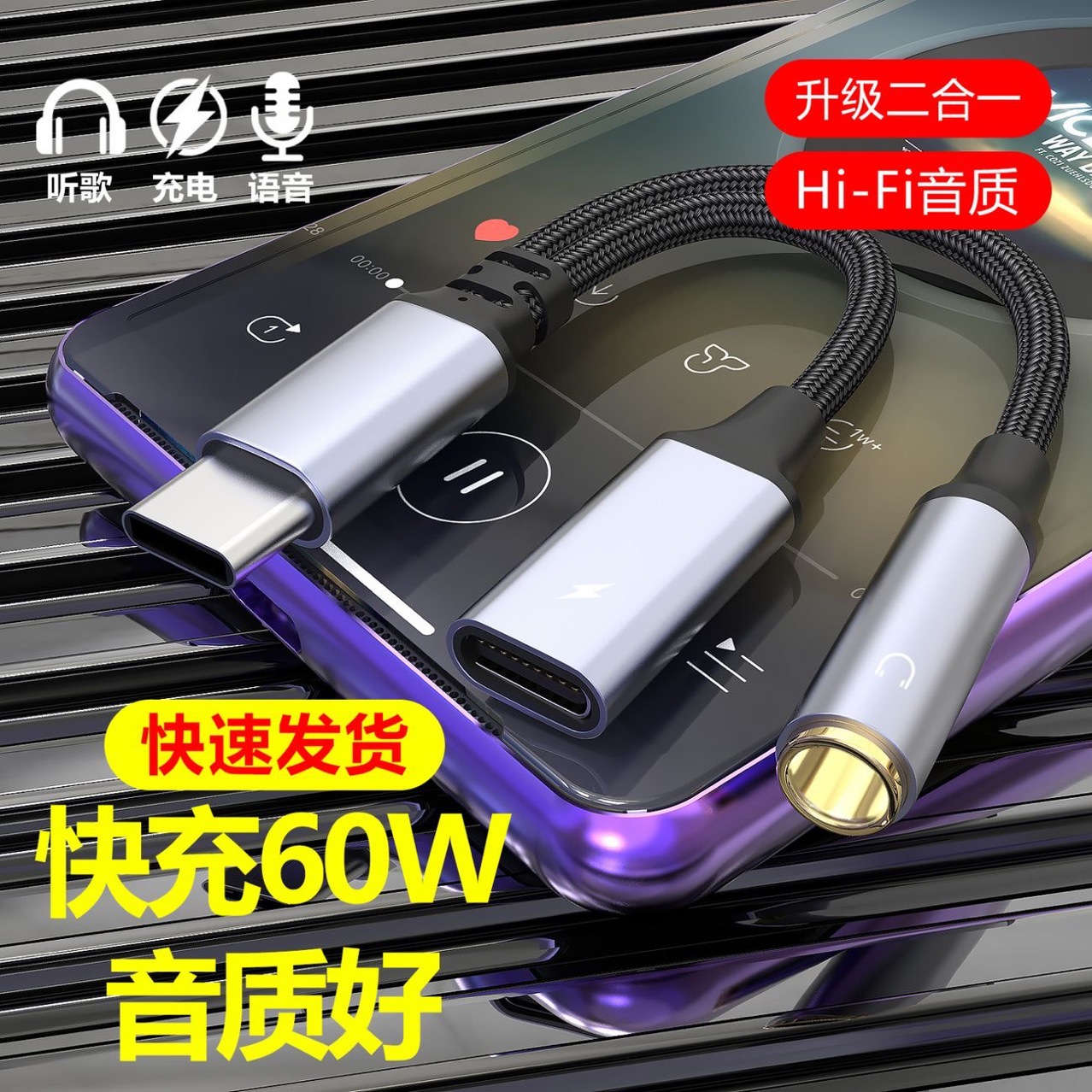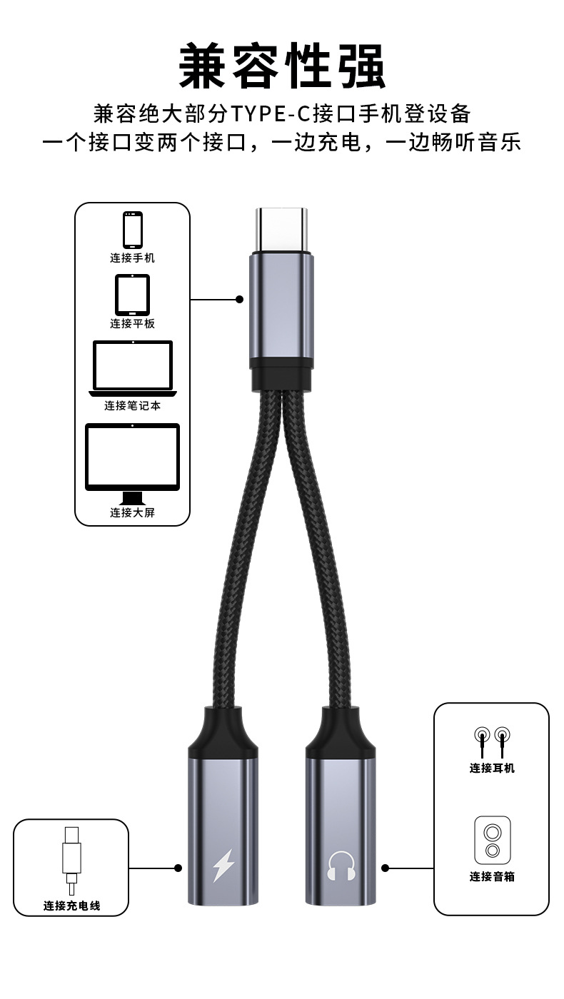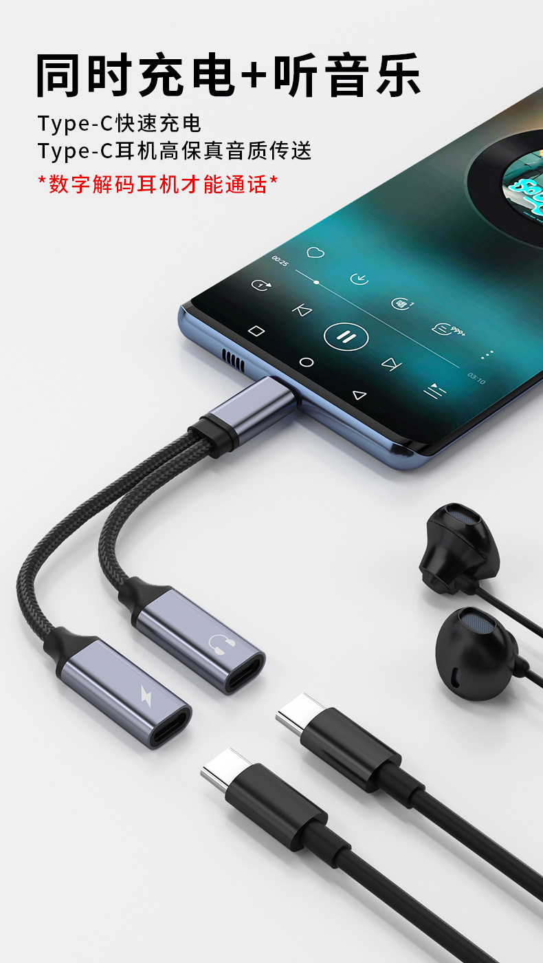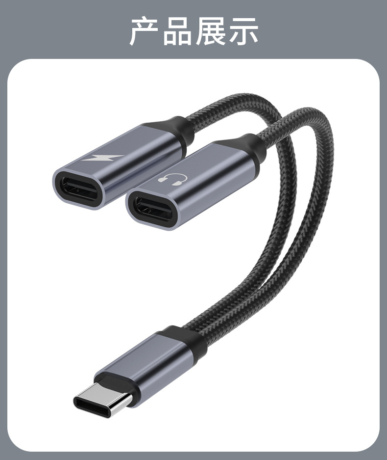 60W二合一TYPE-C数字音频转接线耳机转接头适用苹果华为充电转换