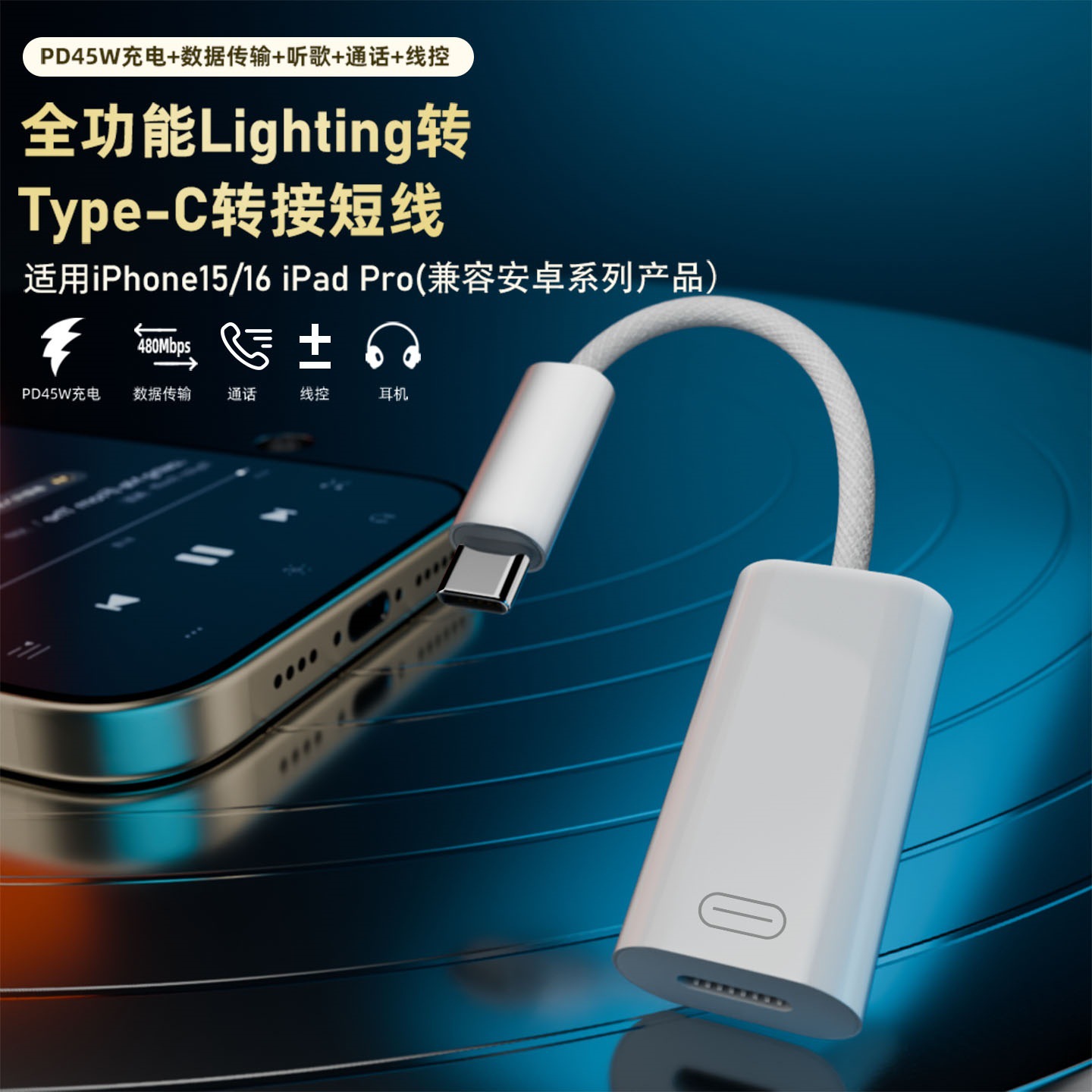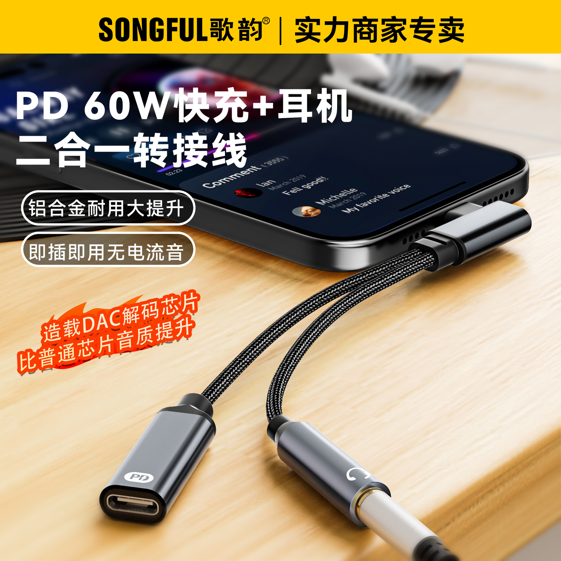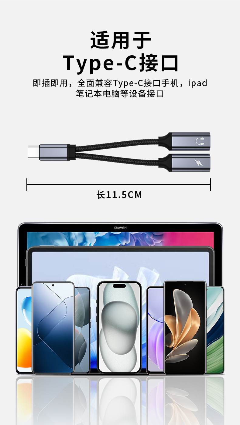 60W二合一TYPE-C数字音频转接线耳机转接头适用苹果华为充电转换