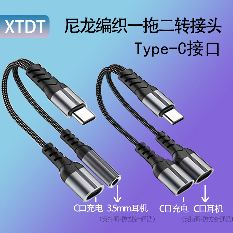 ナイロン編組TYPEC一モップ二オーディオラインはリンゴ聴歌充電一分二イヤホン中継線に適している