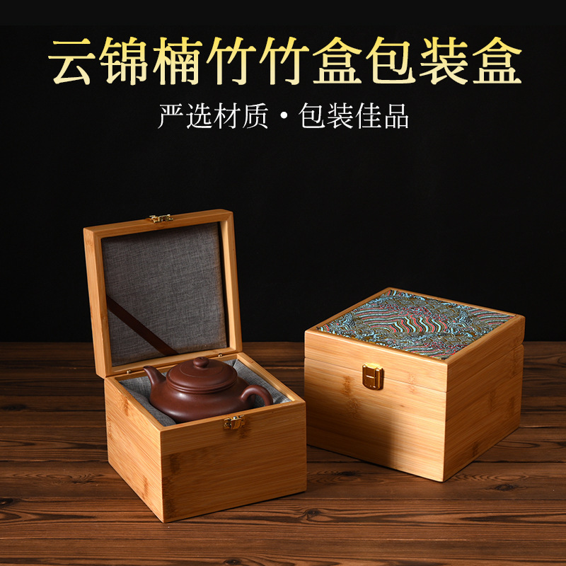 竹の四角い陶磁器の茶器は包装箱を収納します。