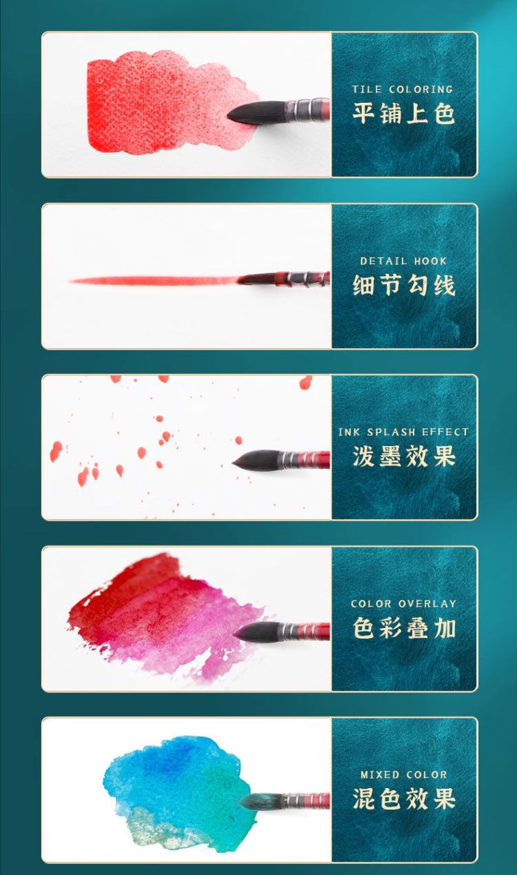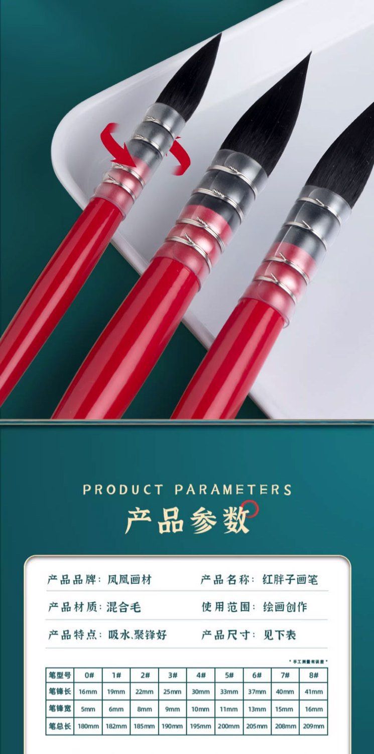 マティーニ赤デブ黒白鸟水彩ペンリス毛学院级ミックスブラシモップペン分初心者毛