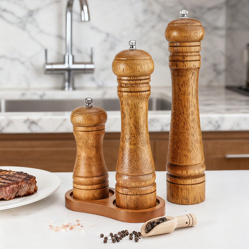 小包は5寸8寸10寸の研磨器の白黒の胡椒の研磨器の家庭用ゴムの木の手を郵送して海塩のサンショウの粉をつぶします。