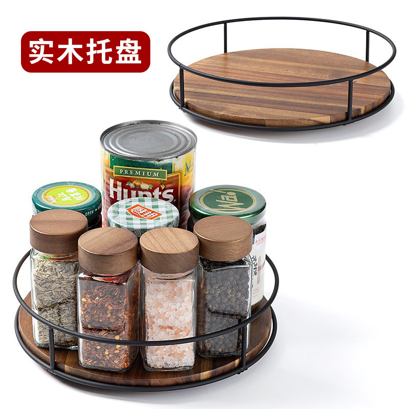 無垢材スーザン収納ラックスチールディスクオーガナイザー化粧品トレイデスクトップ調味料ボトルタンブラー回転